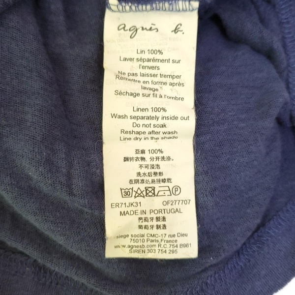 アニエスベー agnes b 長袖カットソー サイズ1 S - ネイビー レディース 麻 トップス