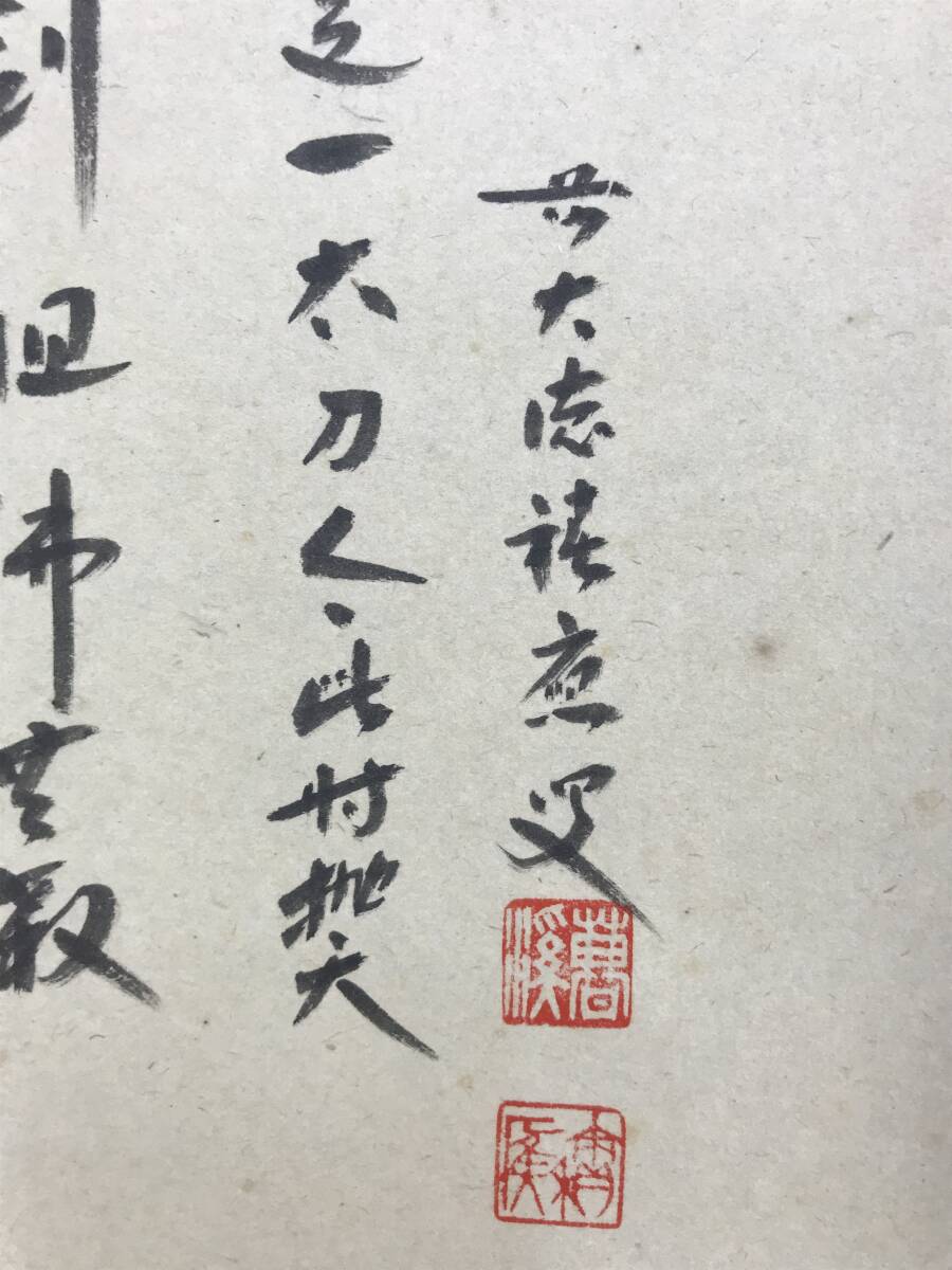【作品状態】 本紙は紙本肉筆です。本紙は薄汚れ、多数の糊シミあります。表装は概ね良好です。