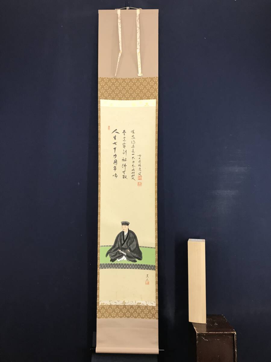 真作/前大徳寺/積應/福本積應/千利休像画賛/掛軸☆宝船☆AJ-931