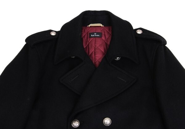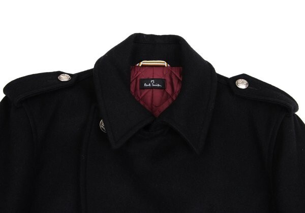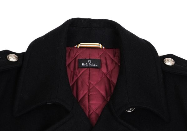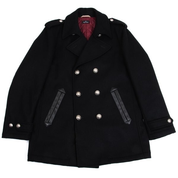 ポールスミスPaul Smith PS 裏中綿キルティングカシミヤ混紡レザーポケットPコート 黒L2 |