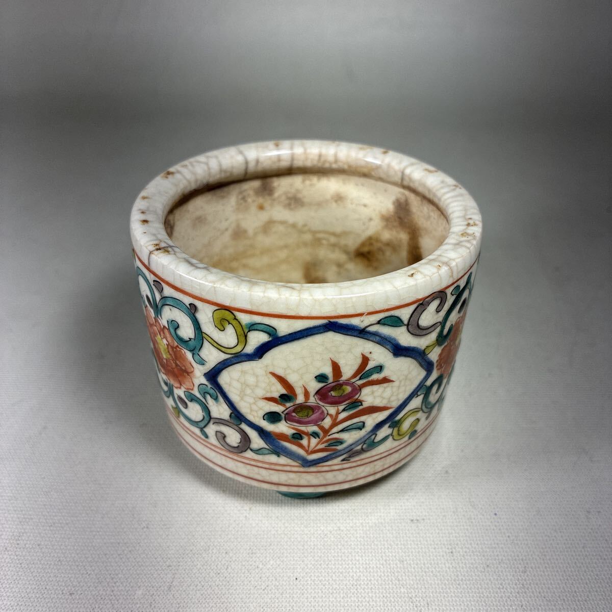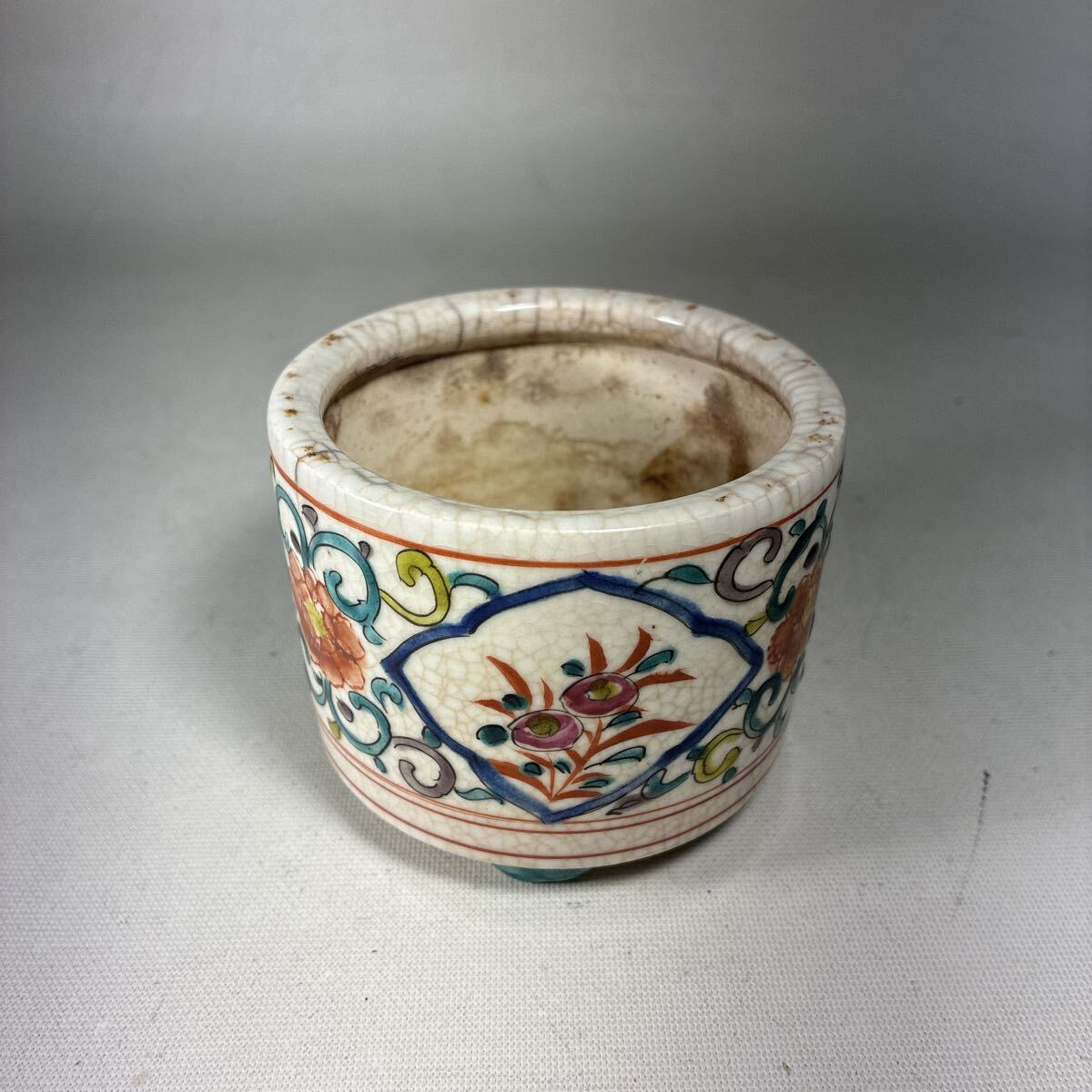 九谷焼三つ足香炉火鉢盆栽鉢で御座います。