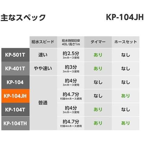 単品_1) 4mホース付 工進(KOSHIN) 家庭用バスポンプ AC-100V KP-104JH 4m ホース付 風呂 残り湯 洗濯機 最大吐出量 11L/分 (付属4mホース時