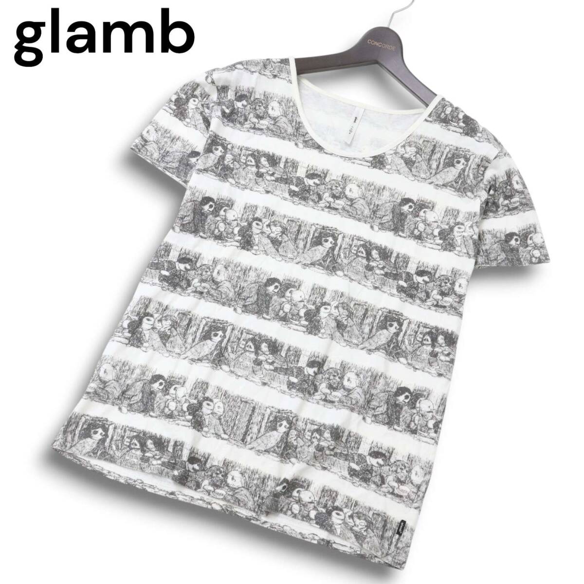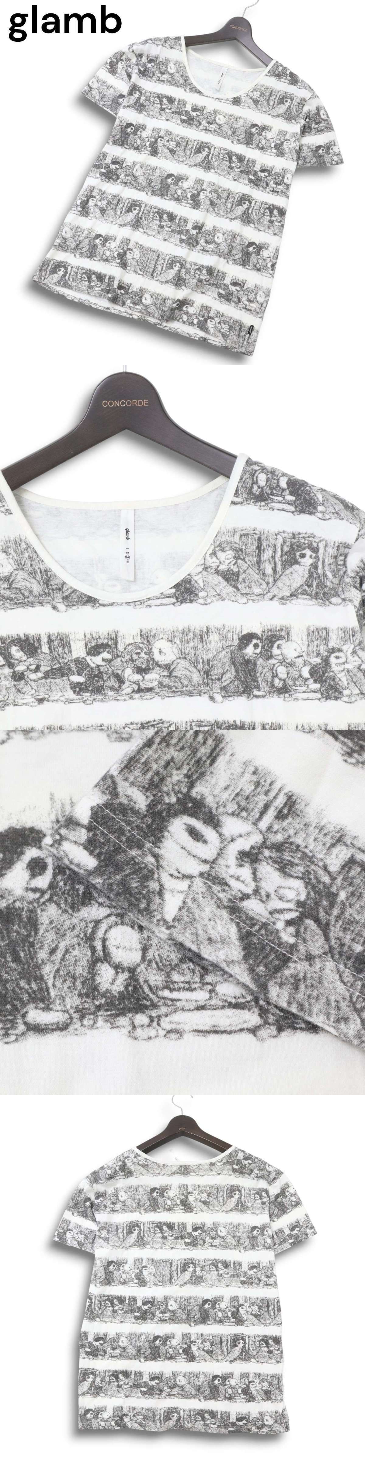 glamb グラム 春夏 イラスト★ 総柄 ボーダー 半袖 Tシャツ カットソー Sz.3 メンズ 日本製