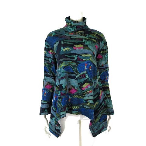 センソユニコ キューブキューブ Cube-Cube チュニック カットソー タートル スウエット 長袖 アシメ ランヘム L 40 カーキ 黒 美品