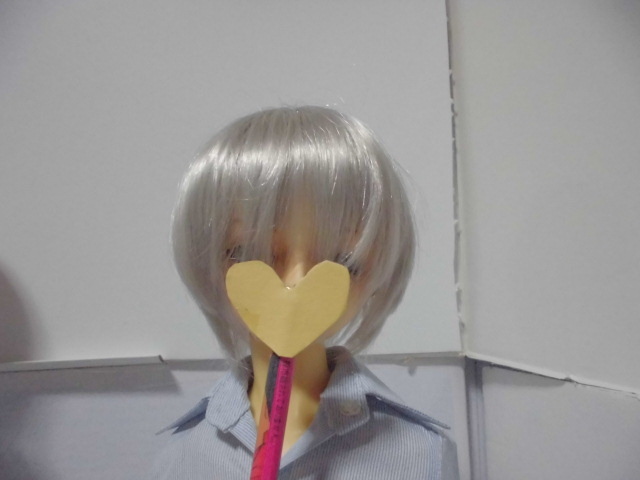 お譲りいただいた品です。メーカー不明。 前髪は、目が隠れるほど長いです。少々乱れがあります。色は、シルバー?です。
