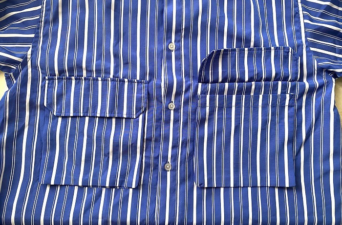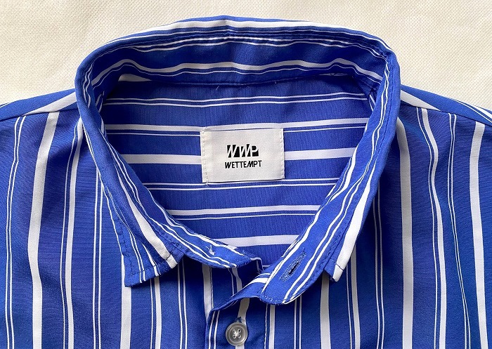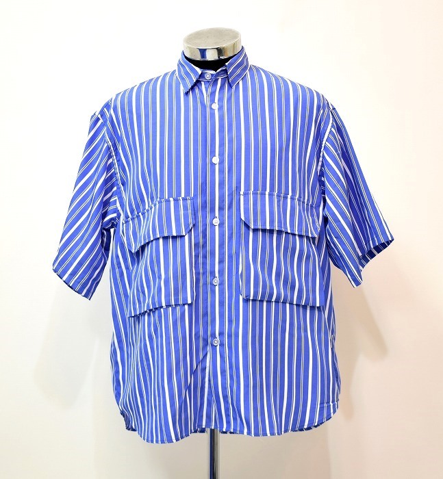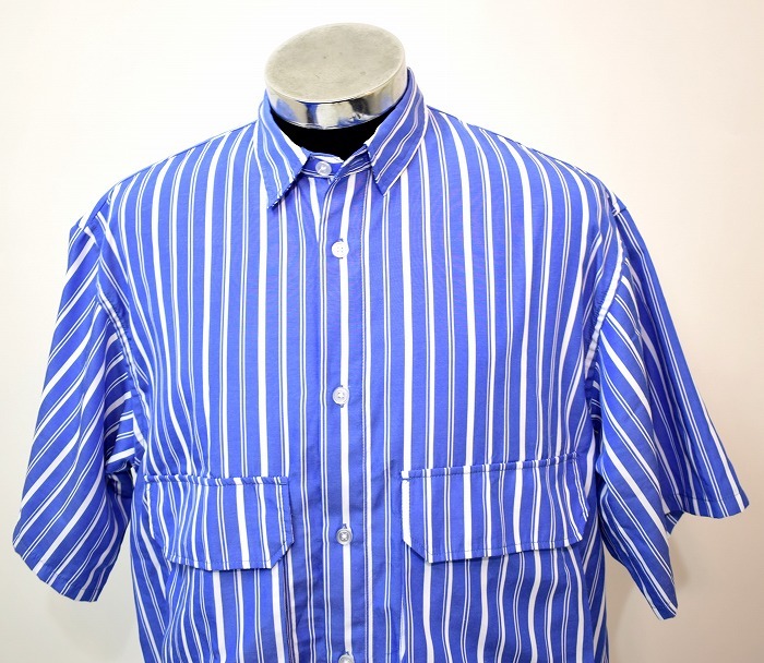「WETTEMPT(ウィテンプト)」の BIG POCKET STRIPE SHIRT ビッグ ポケット ストライプ シャツ BLUE M 半袖シャツ WT342001BW カジュアル コンサバ ストリート 半袖 S/S です。