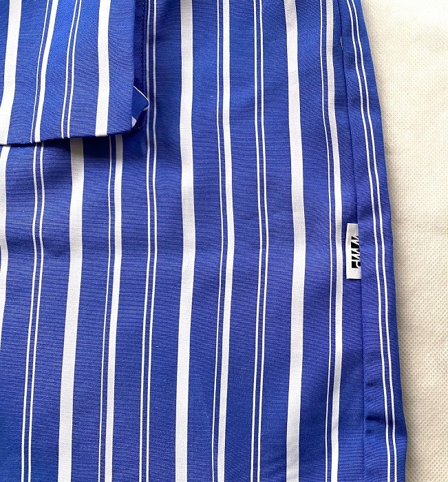 ・素材: ポリエステル100% ・カラー: ブルーストライプ ・サイズ: M 実寸(平置きにして)肩幅 約53cm・身幅 約63cm・着丈後ろ 約79cm・袖丈 約28.5cm(多少の誤差はお許しください) 両胸の大きいフラップポケットが特徴のオーバーシルエットなストライプシャツ。 やや下についたポケットの位置がリラックス感を漂わせ、マチ付きで機能性もあります。 太いラインと細いラインが混ざった遊び心のある爽やかなストライプ柄は、コーデのアクセントになること間違いなし。 サラッとした着心地も相まって清涼感抜群の1枚です。 使用感の少ない綺麗なアイテム。 かなりお値打ちだと思います。この機会にぜひ! 他にもいろいろ出品しています。 管理番号: 272508Y-090506★ N1上 |