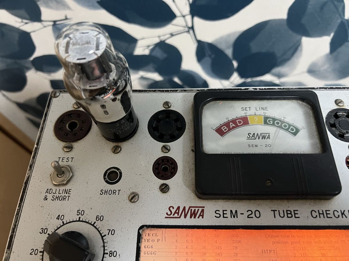 当方の試験機で同型式の未使用の真空管を試験すると75程度の値を示しますので基準として参考にしてください。