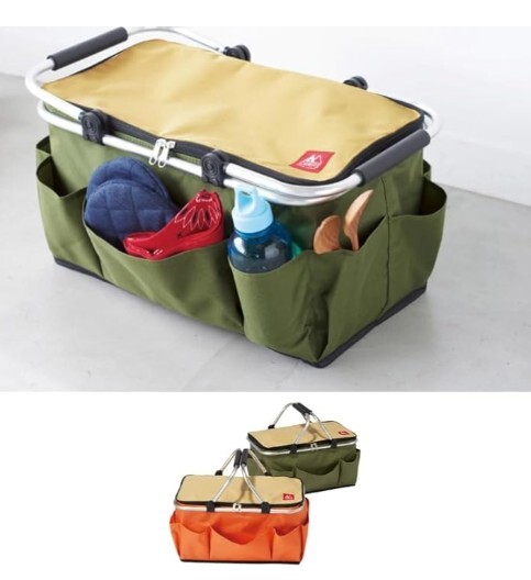 ★たくさんのポケットがうれしい、アルミフレームの保冷保温どちらも対応のバスケットです。