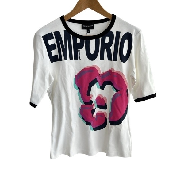 エンポリオアルマーニ EMPORIOARMANI 半袖Tシャツ サイズ44 L - 白×ダークネイビー×マルチ レディース 美品 トップス