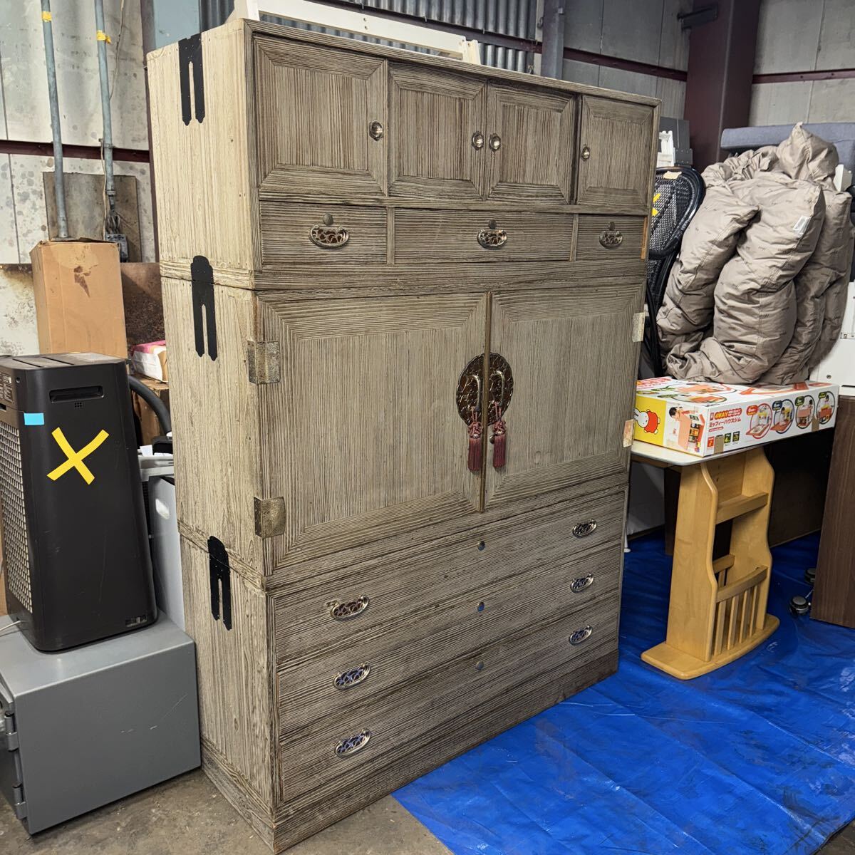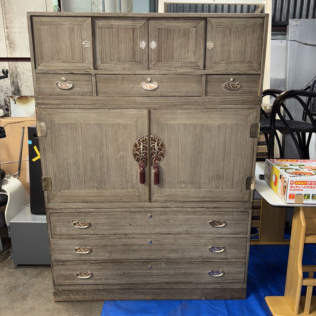 アンティーク 桐箪笥 和箪笥 レトロ 背面浮きあり 古民家 引き出し 木製 和家具 ビンテージ 122センチ× 43センチ×168センチ