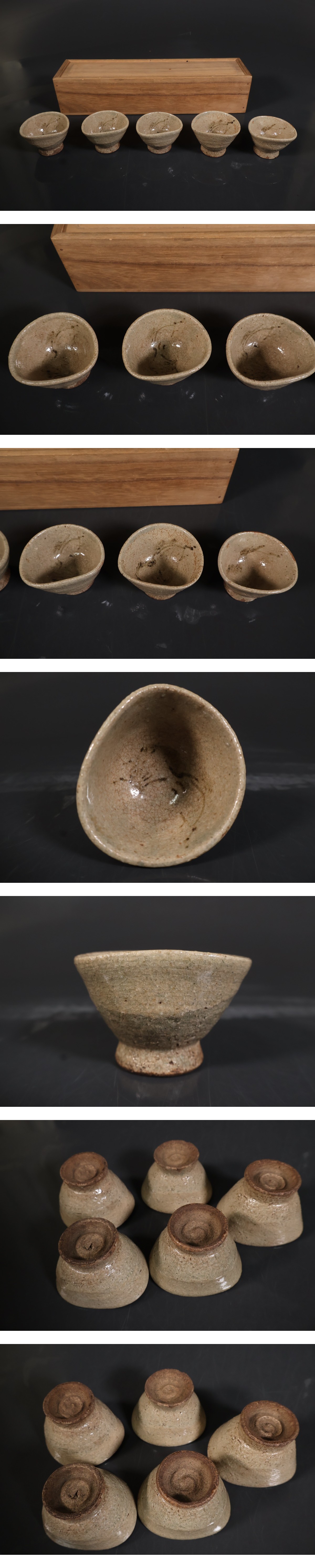 【和】(A3356) 時代古作 時代古相馬焼 鉄絵馬図煎茶碗 五客 酒器 保管箱有 煎茶道具