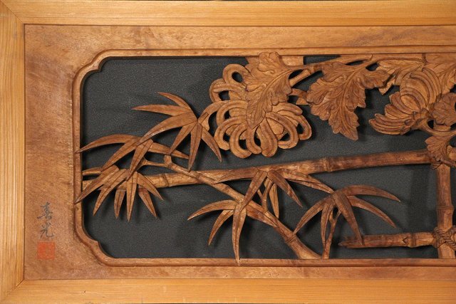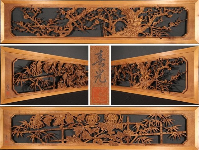 ◇商品名◇ | ☆東国☆井波彫刻 寿光作 細密木彫り 四君子図欄間一対 (検)井波彫刻欄間 木彫 建具 和風 古民家 | ||||||||||||||||||||||||||||||||||