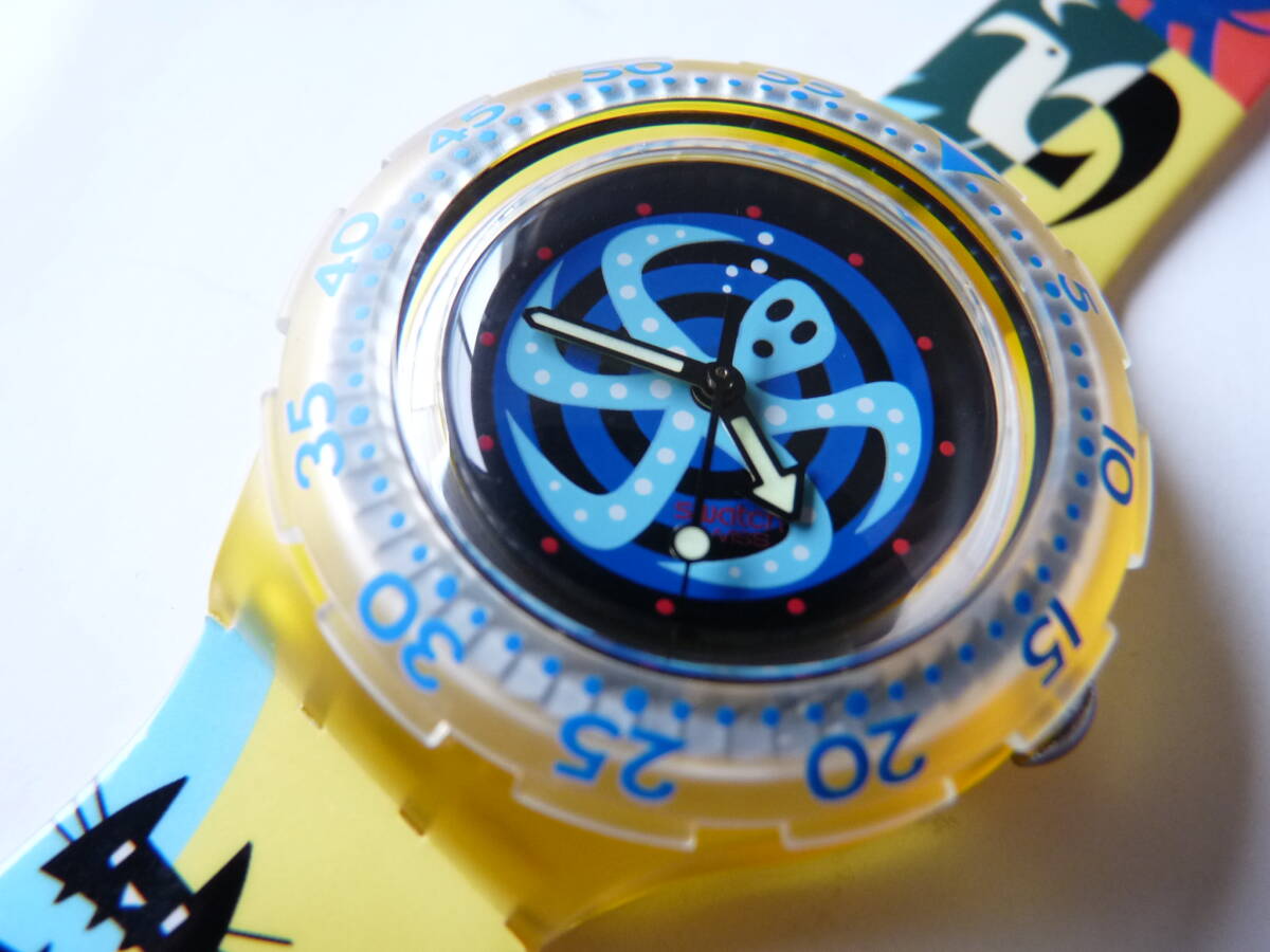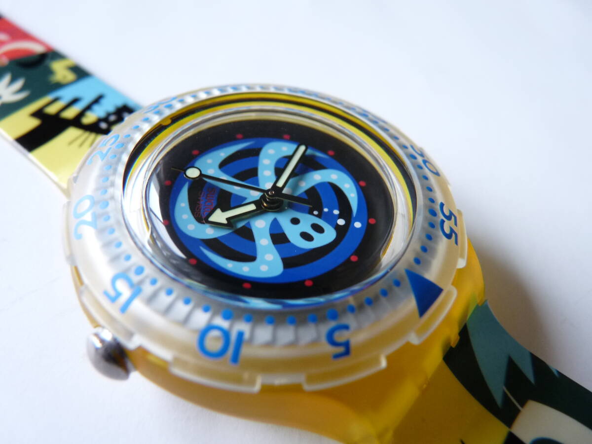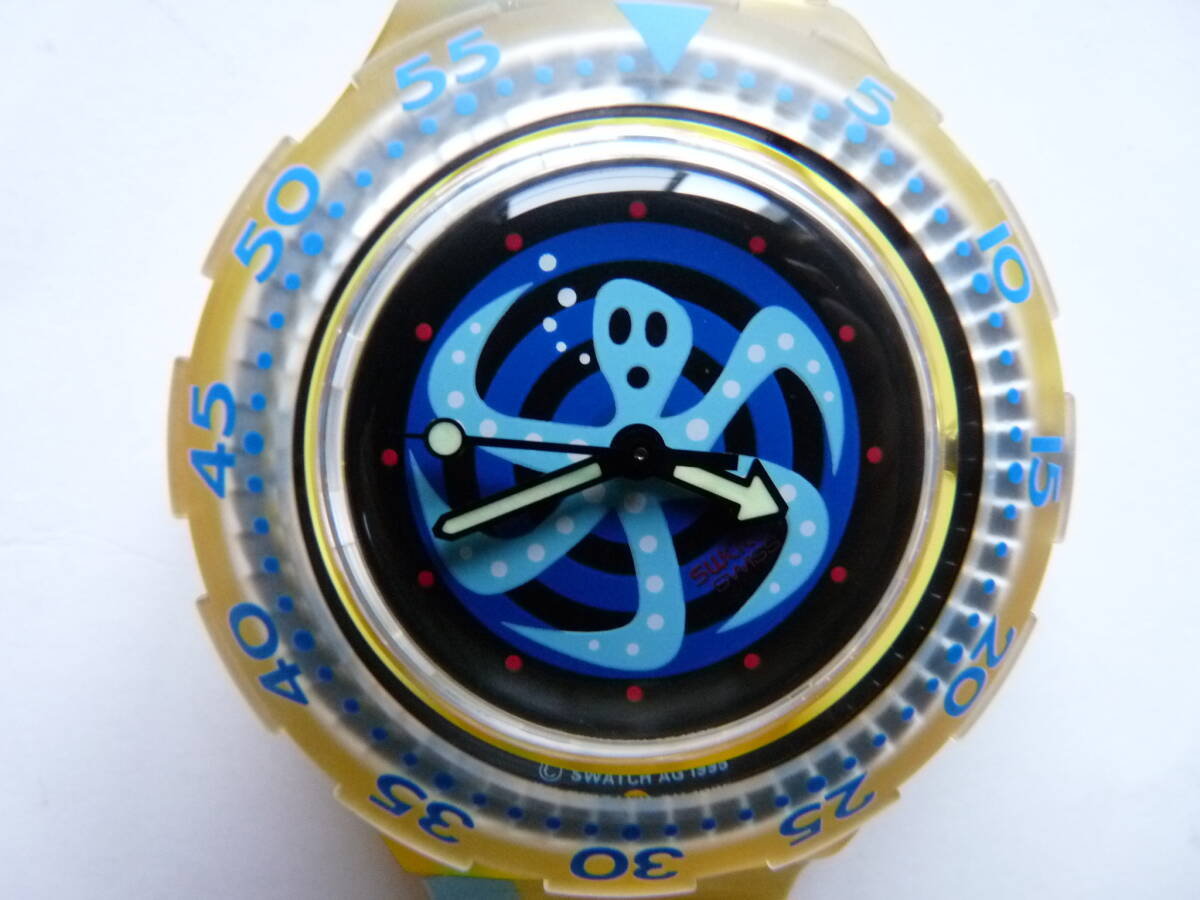 未使用電池交換済 美品 スウォッチ Swatch 1996年モデル スクーバ タコモデル Pouple 品番SDJ102