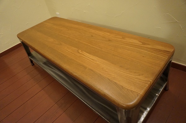 〇鉄の持つ質感やエルム無垢材の持つ美しい木目〇