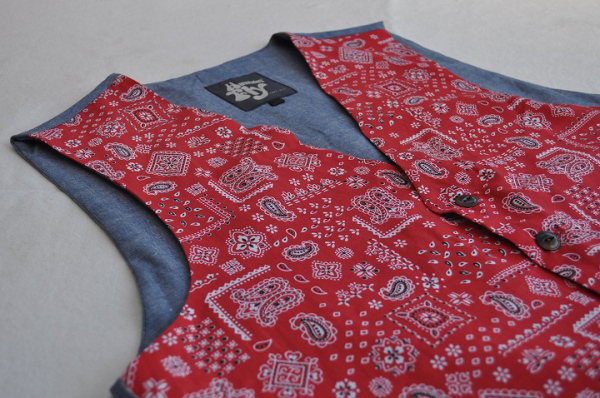 Lサイズ Bandana Cotton Vest バンダナコットンベストレッド新品ジレ@