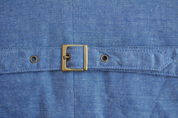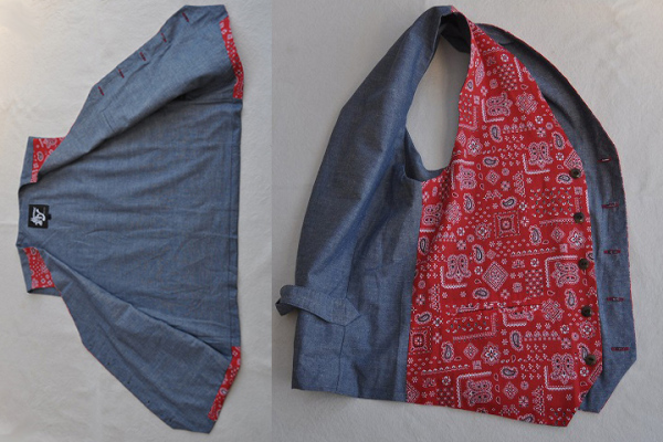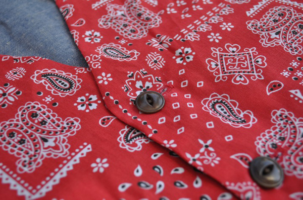 前身頃はバンダナ生地でコットン100% 後ろ身頃もシャンブレーでコットン100%