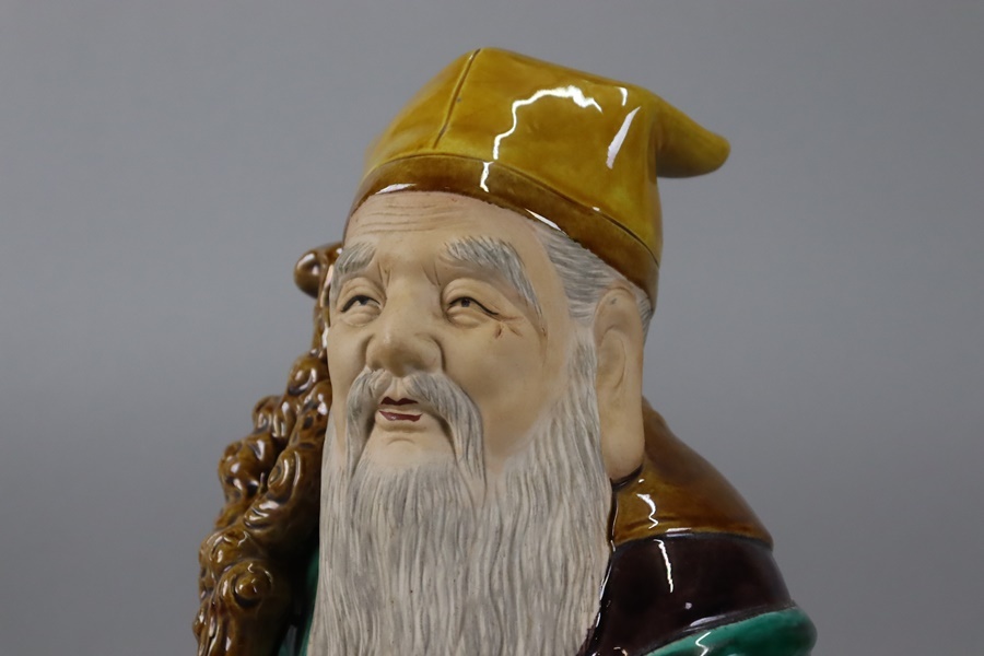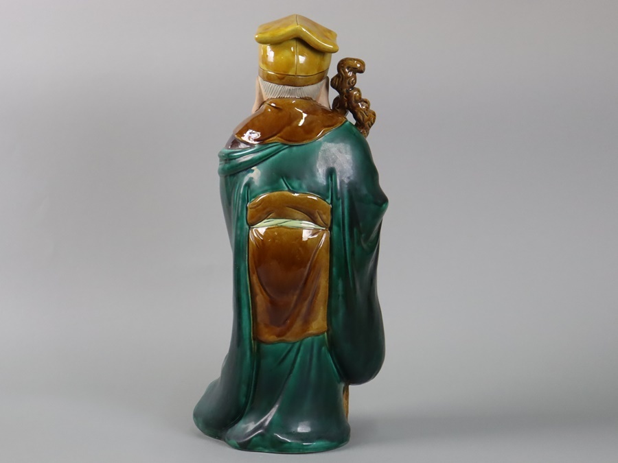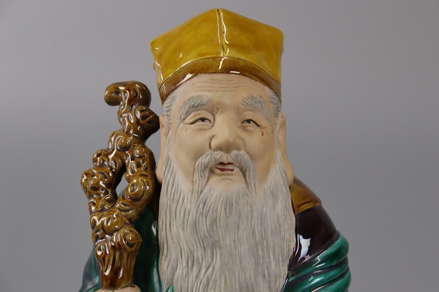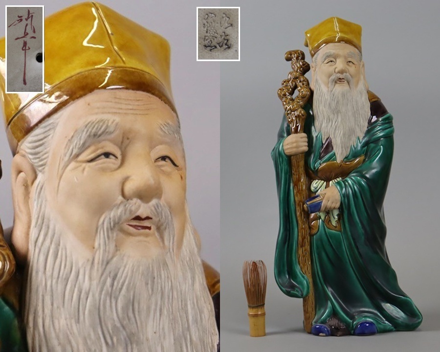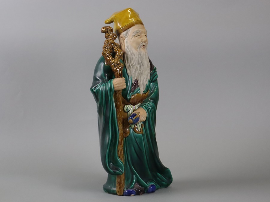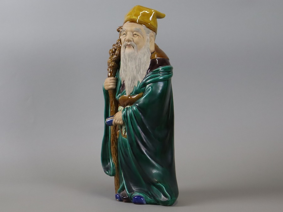 【時代 九谷焼 八幡窯 色絵 寿老人 置物 高49cm】