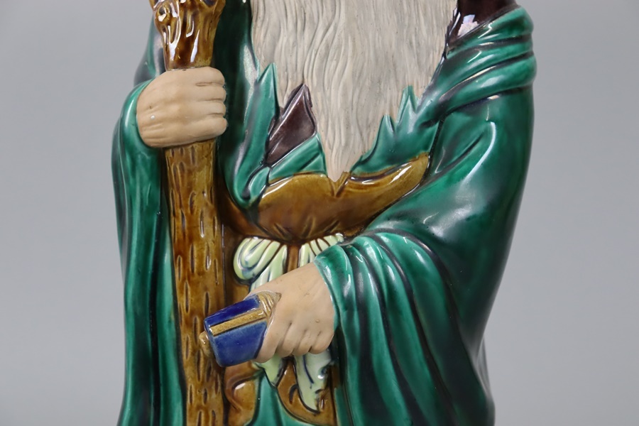 時代 九谷焼 八幡窯 色絵 寿老人 置物 高49cm 縁起物 細密細工 古美術[d927]