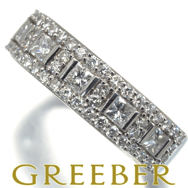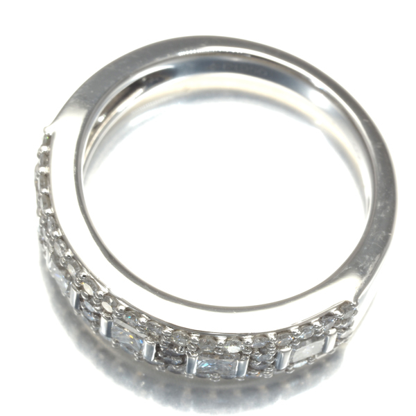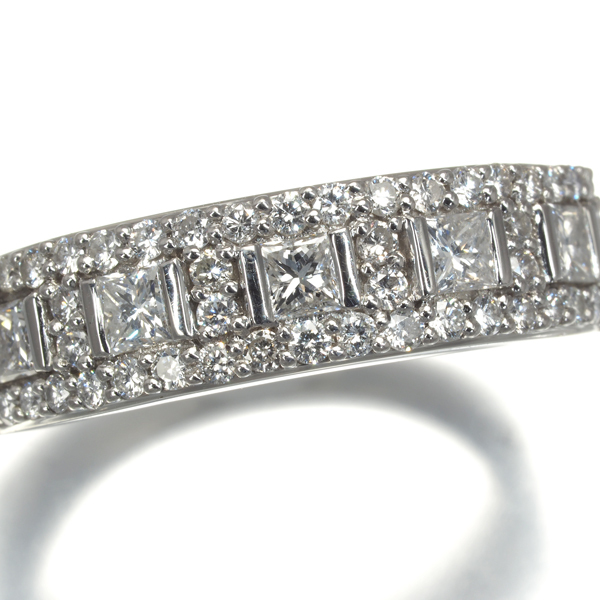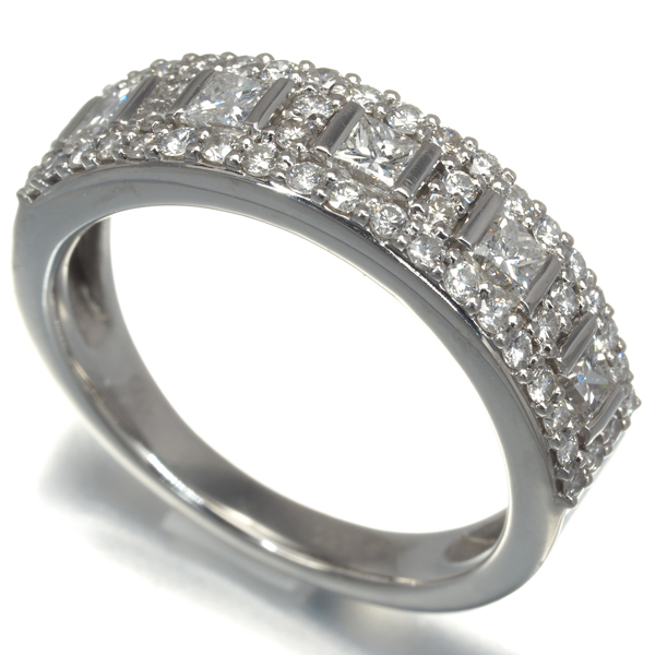 プリンセスカットとラウンドカットのダイヤモンドを総計1.00ctもの輝きで飾ったGSTVに贅沢なリング。上質な透明感を持つ1石1石の煌めきが指元で華やかな雰囲気を演出するジュエリーです。 |