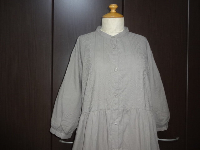 W上ギャザー切替になります。 秋感が有るバンドカラーシャツOPです。