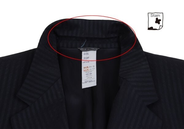 コンディション | 肩パッドがあります。襟裏・裏地に薄汚れ、裏地裾・後ろに引っ掛けがあります(写真参照)。 その他目立ったシミ、汚れ、ほつれ等なくいい状態です。クリーニング済み。 ※商品の詳細写真はこちらよりご確認頂けます。 |