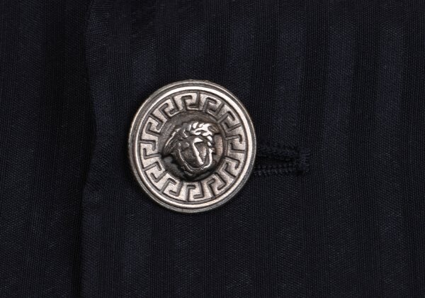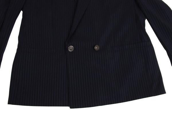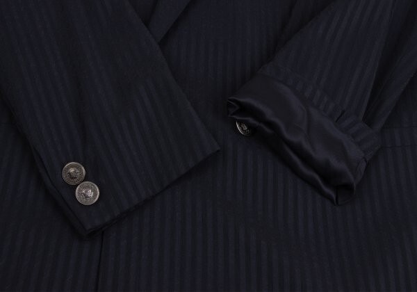 ジャンニヴェルサーチGIANNI VERSACE ウールシルクシャドーストライプダブルジャケット 紺54 |