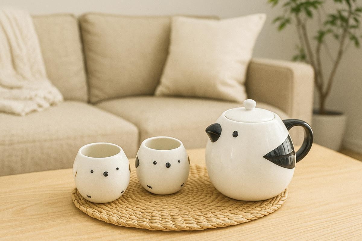 ころんと可愛いフォルムが目を引く、シマエナガ親子のティーセット。