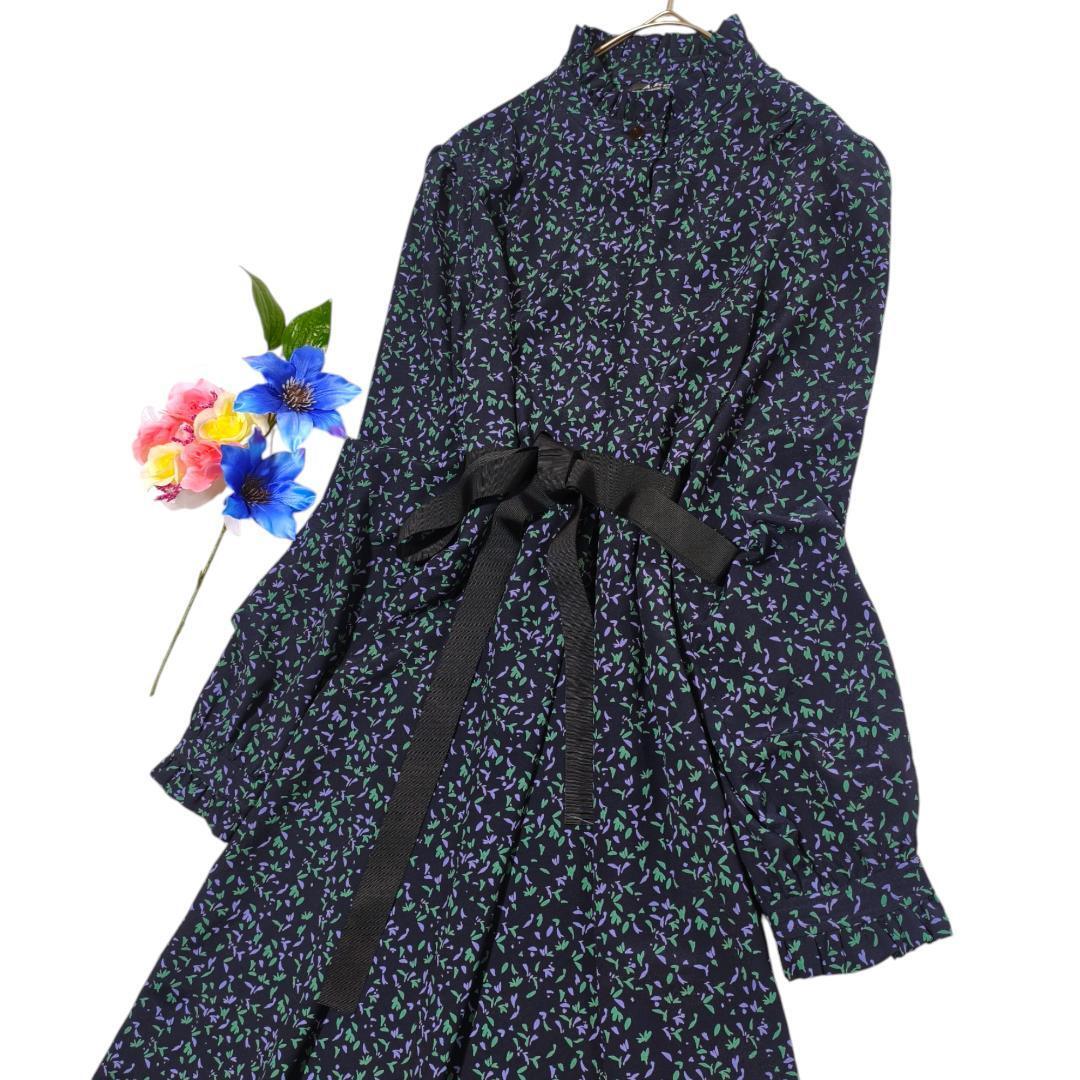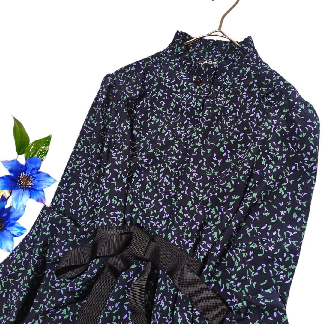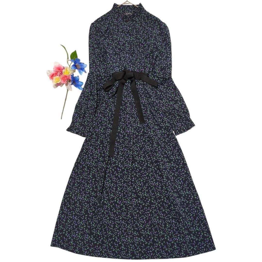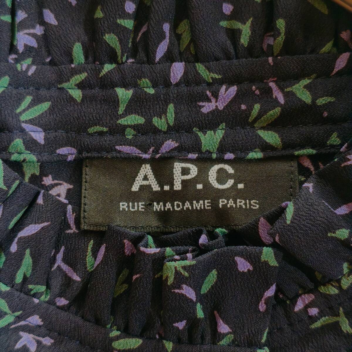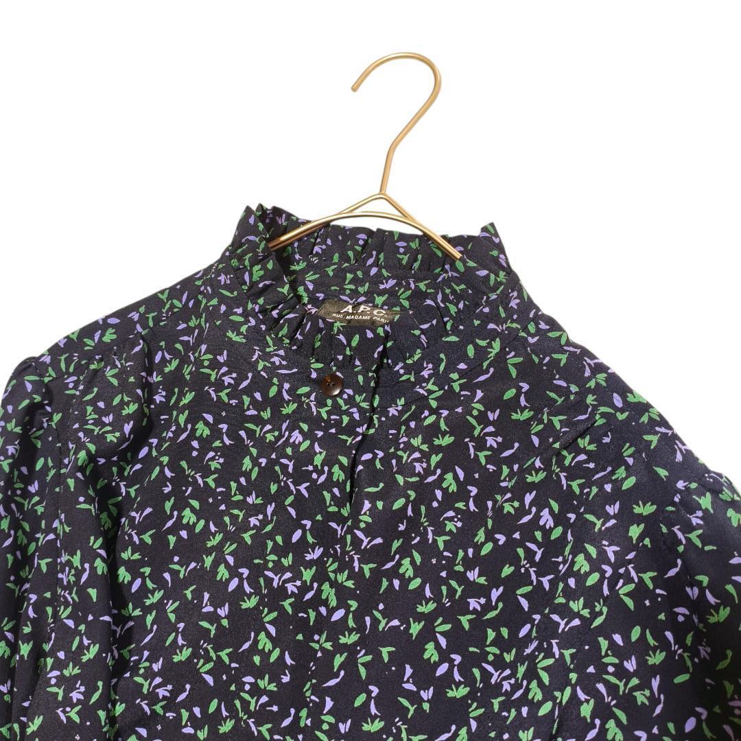未使用級 アーペーセー A.P.C. ロング ワンピース 花柄 フレア フリル ドレス マキシ ハーフボタン シャツ プルオーバー フラワー Aライン 36 レディース