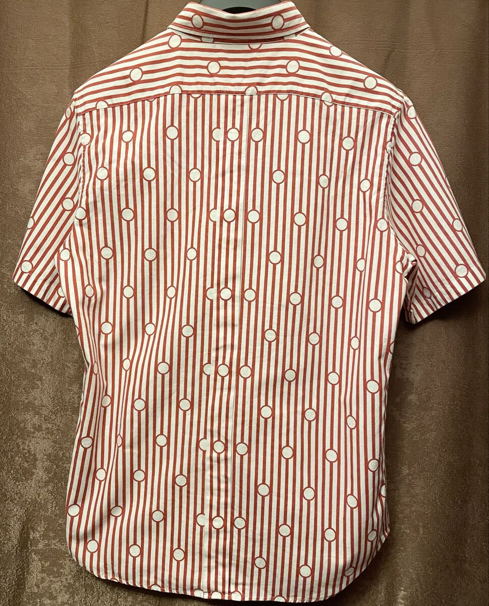 ストライプにドット柄を組み合わせたデザインに襟立ちのよいボタンダウン仕様にコットンとリネンの混紡素材なので、夏にサラリと着られるおすすめの一品です。