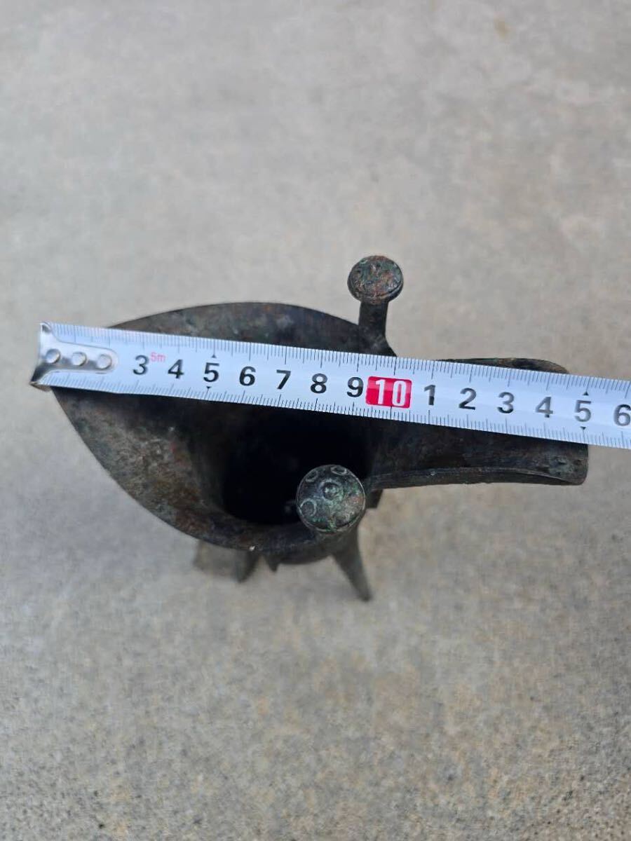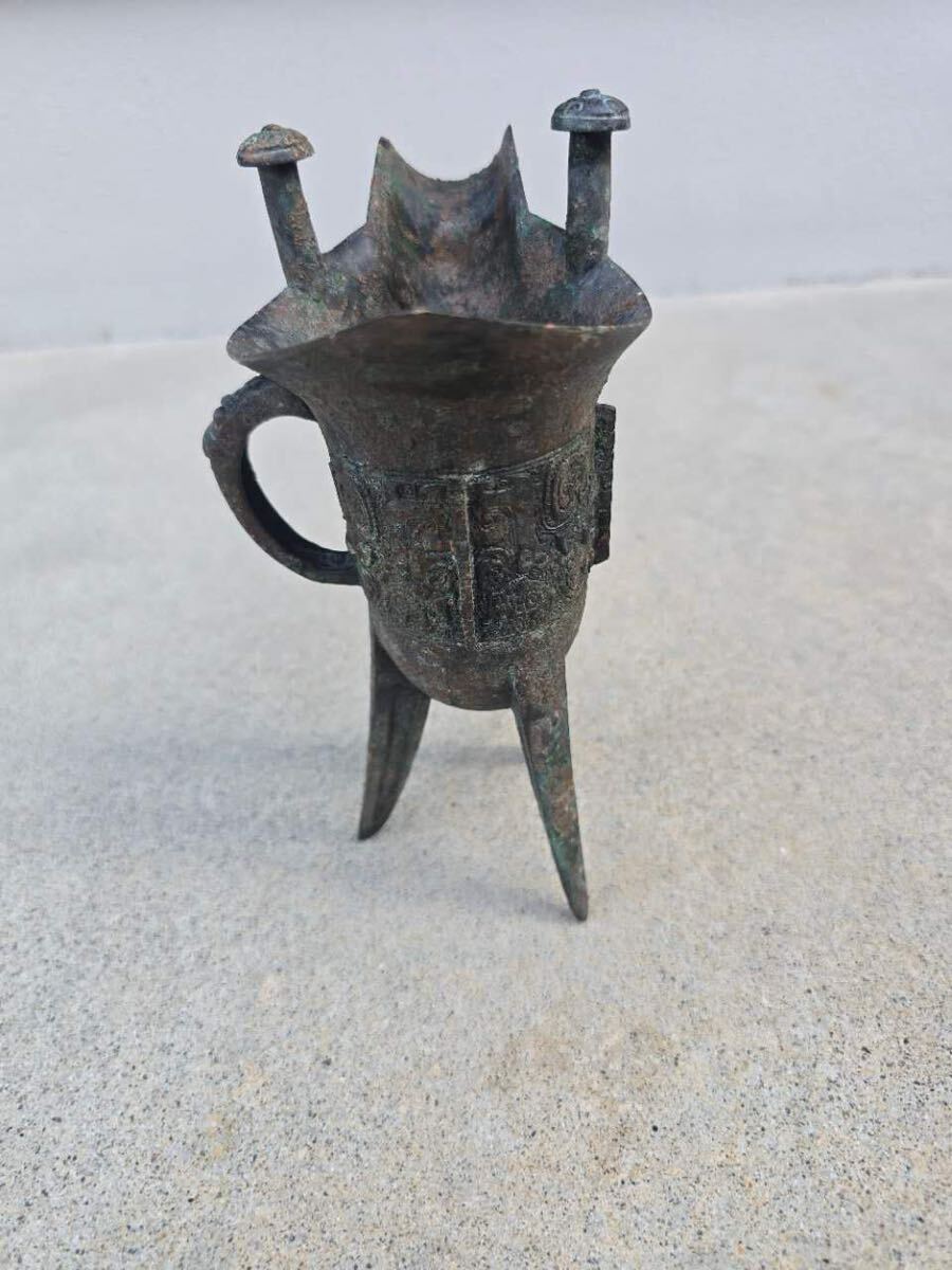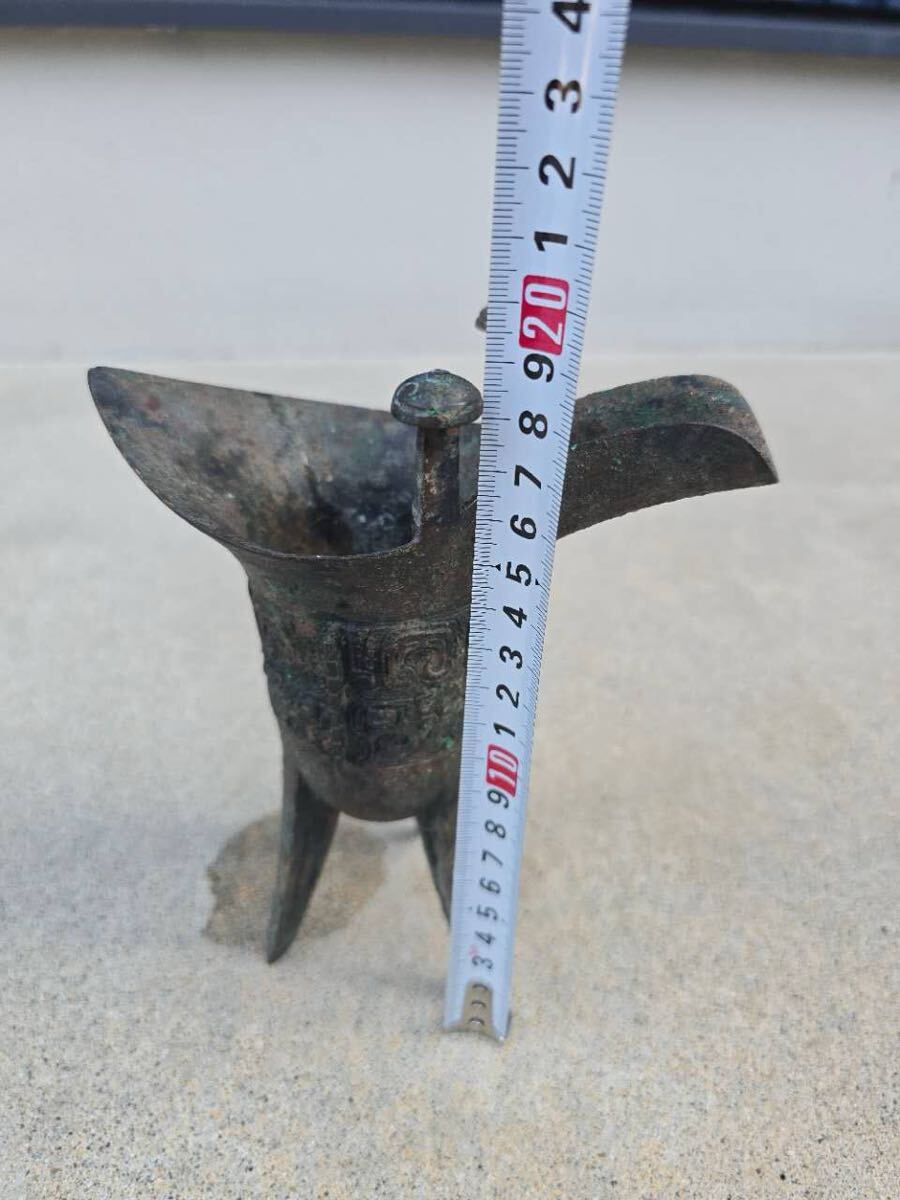中国古玩 青銅 爵杯 三足爵 時代物 コレクター収蔵品 高さ約19cm