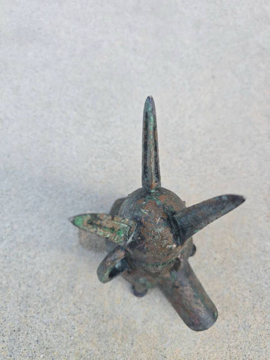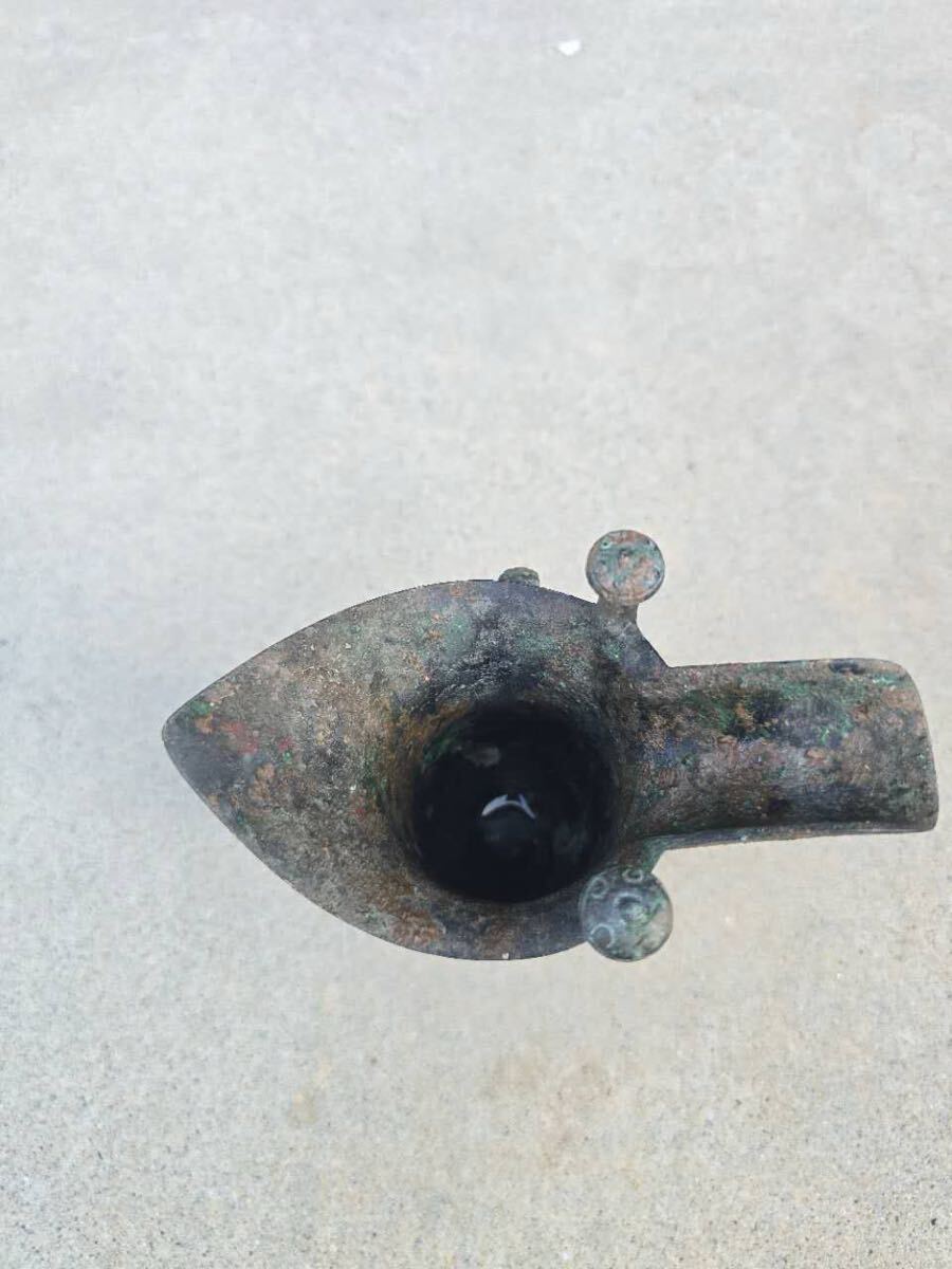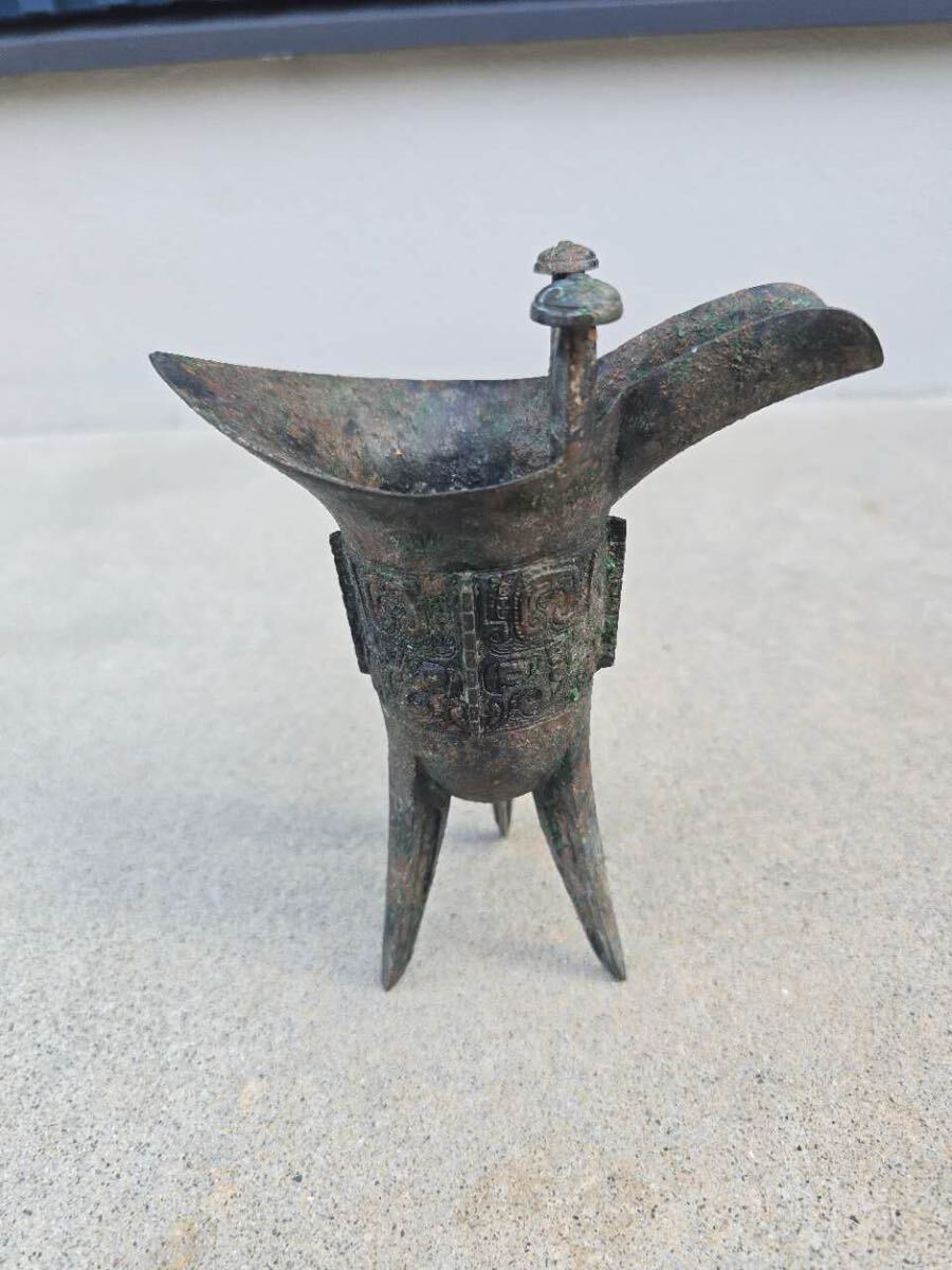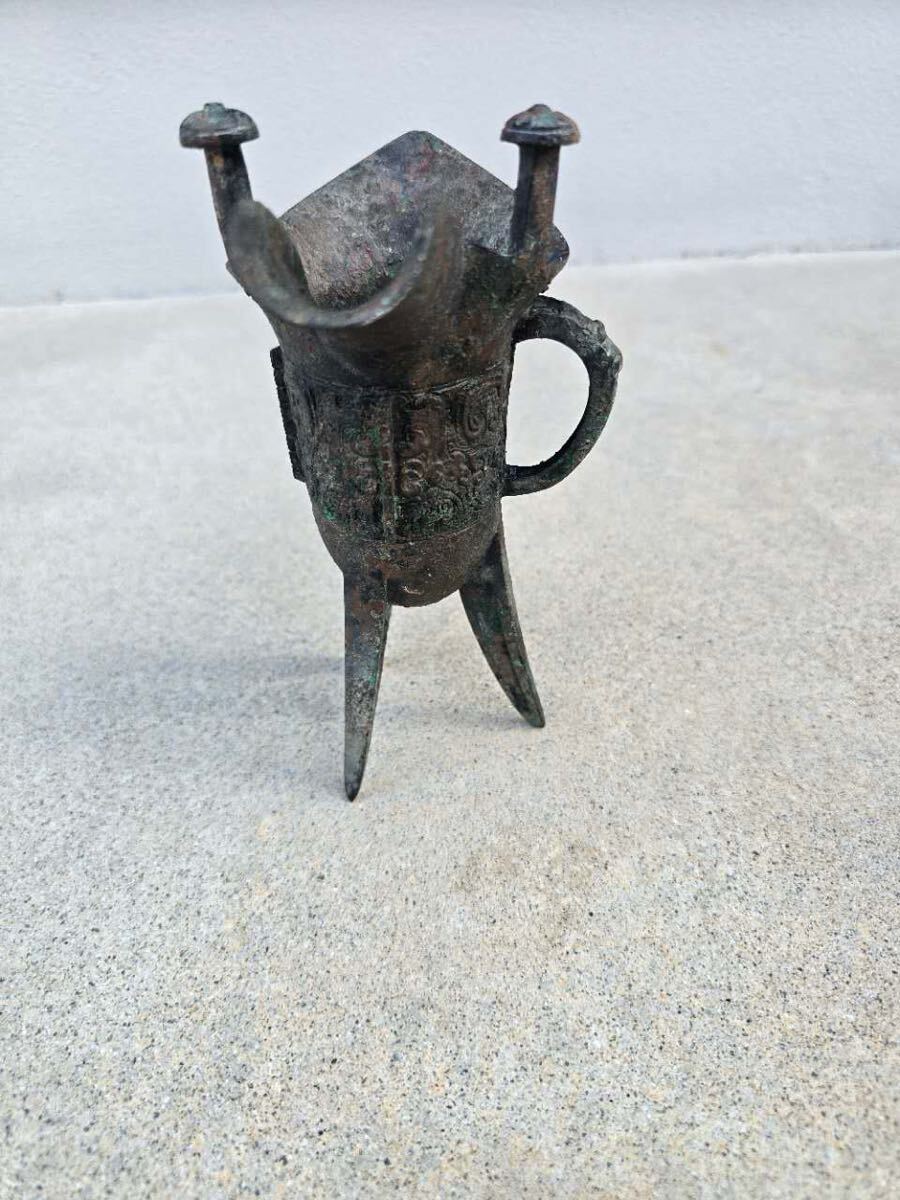 中国古玩 青銅 爵杯 三足爵 時代物 コレクター収蔵品 高さ約19cm