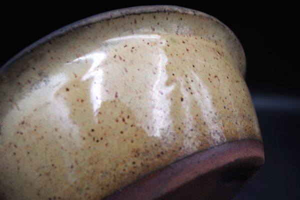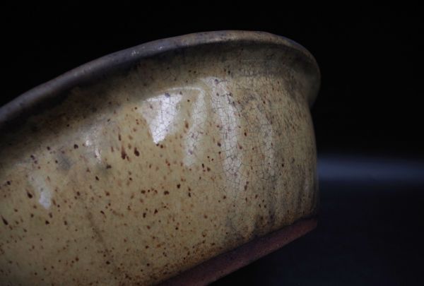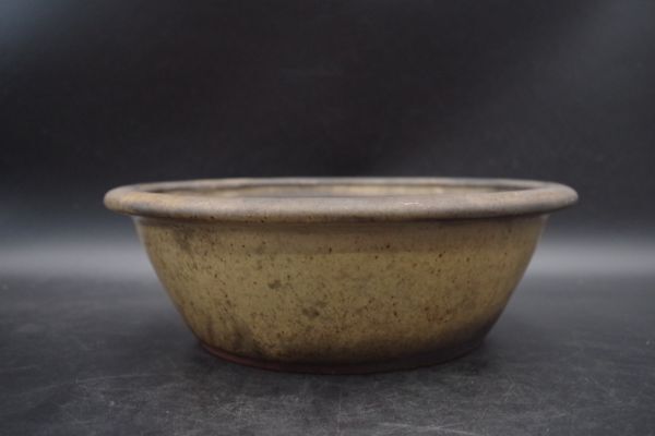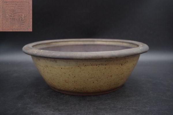 コレクター買取品 名工 三琇一陽 白釉 陣笠形鉢 植木鉢 盆栽H155