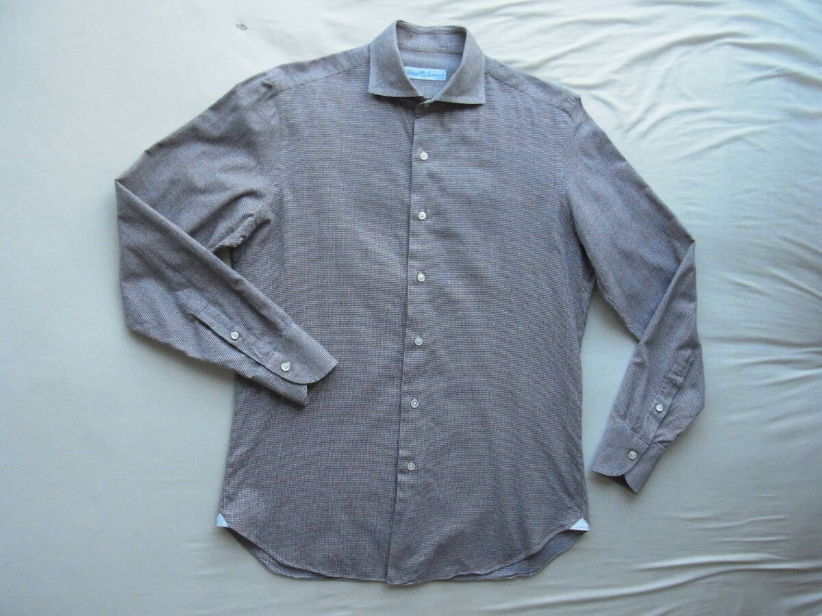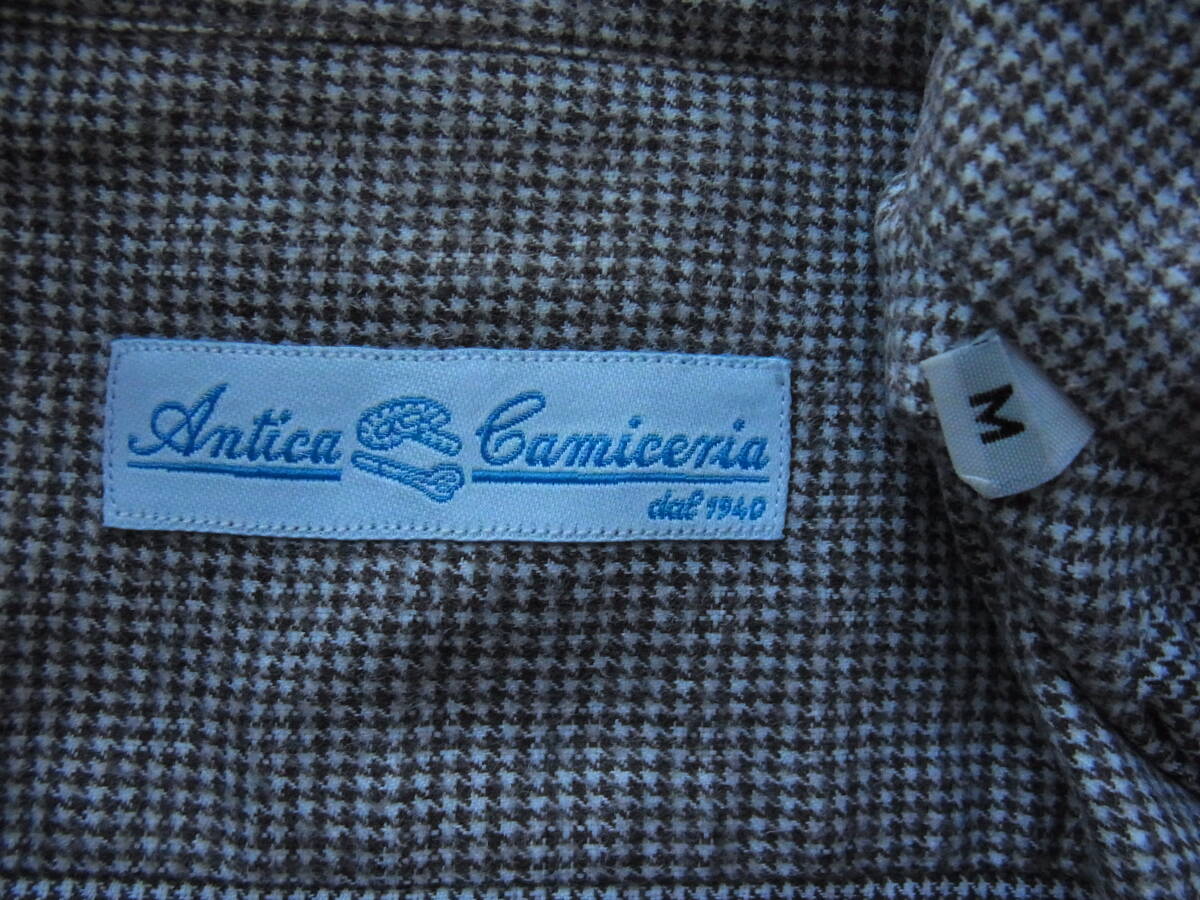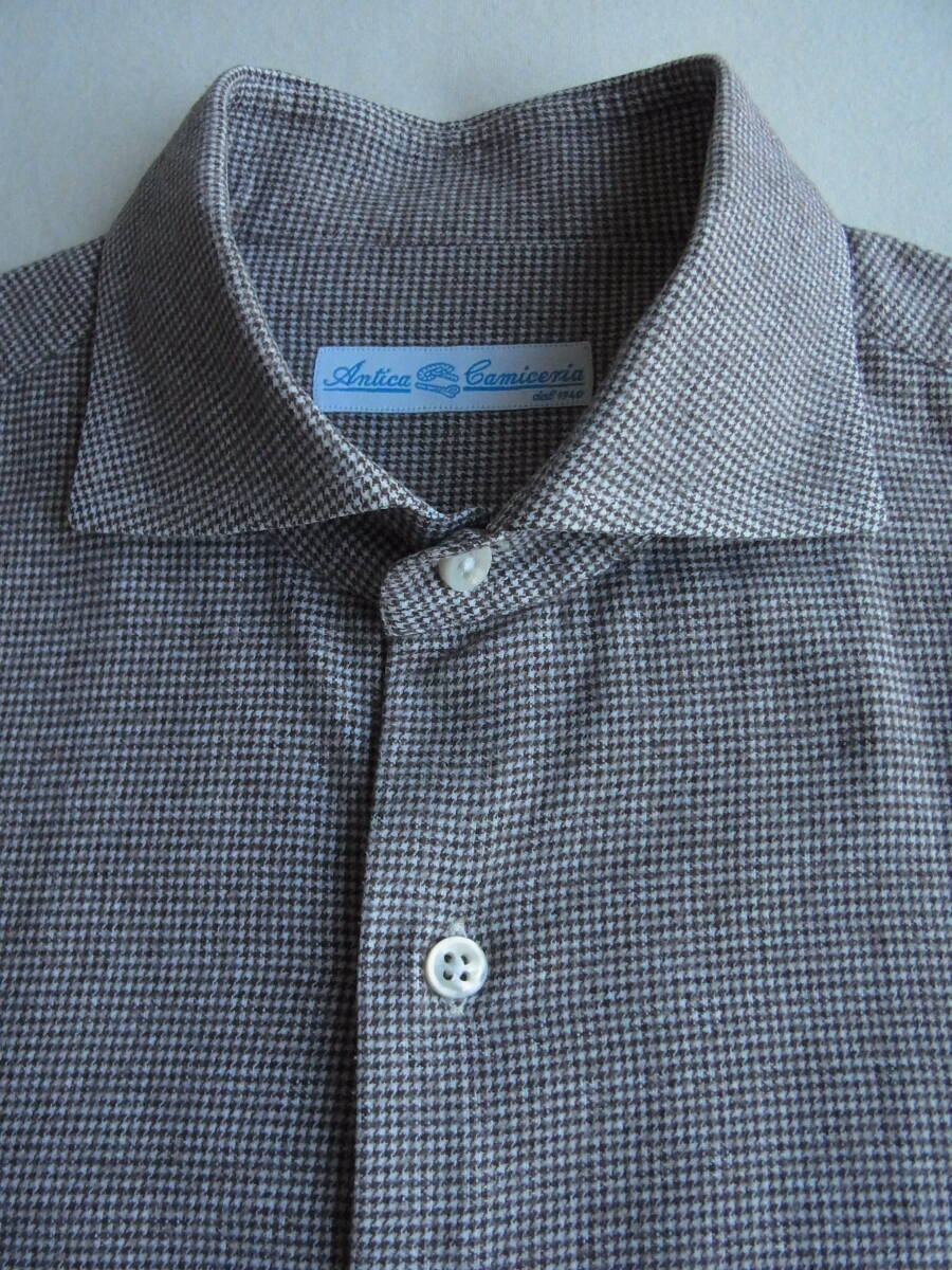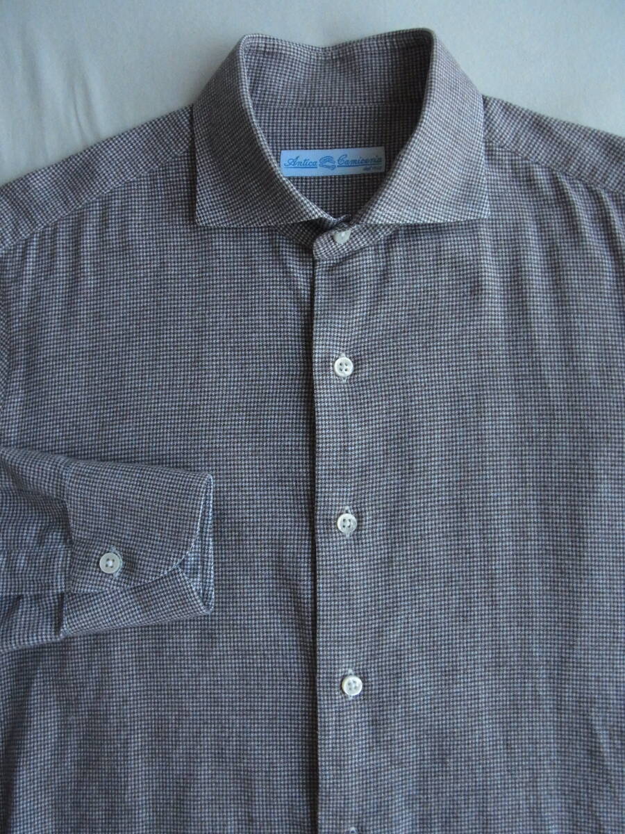 三越伊勢丹別注 Antica Camiceria  アンティカカミチェリア 千鳥格子柄 ワイドカラーシャツ サイズ M   made in italy
