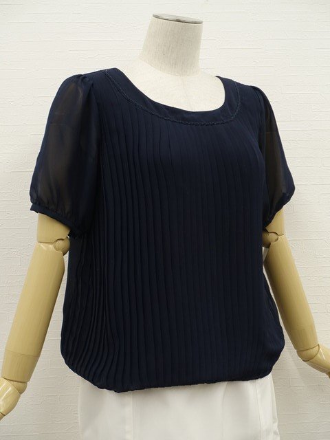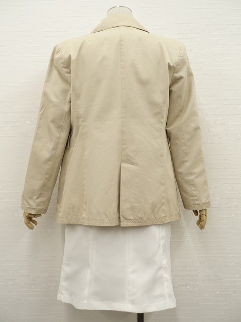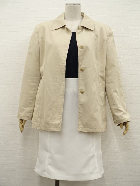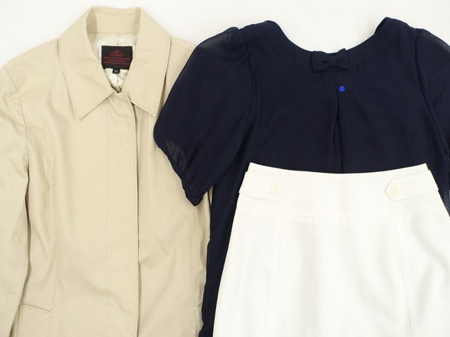 長袖スプリングコート+半袖シフォンプルオーバーブラウス+ひざ丈ストレートスカート コーディネート上下3点セット L相当 ベージュ/ネイビー/ホワイト きれいめ・オフィス系 30~40代