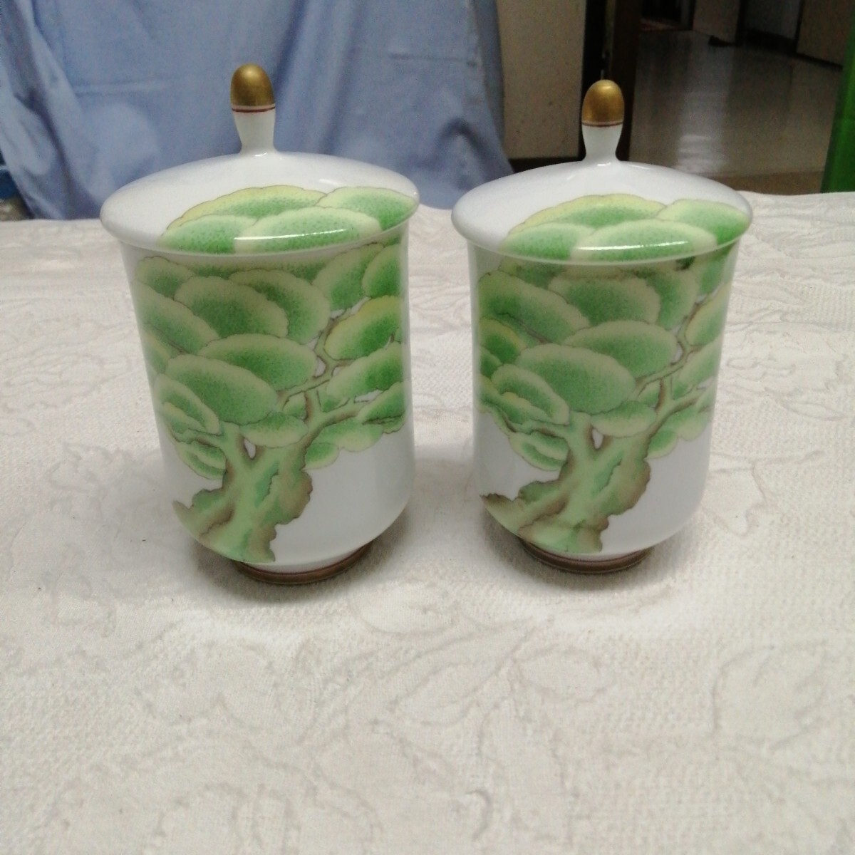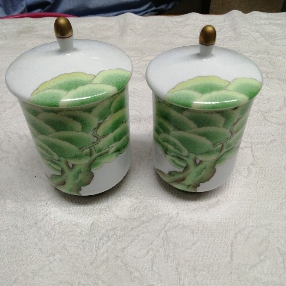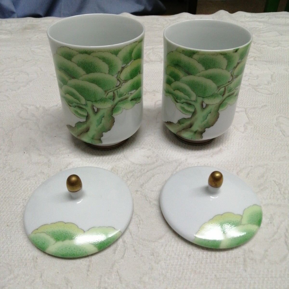 有田焼 香蘭社 大木 松の木 夫婦 湯呑 茶器 蓋付 金