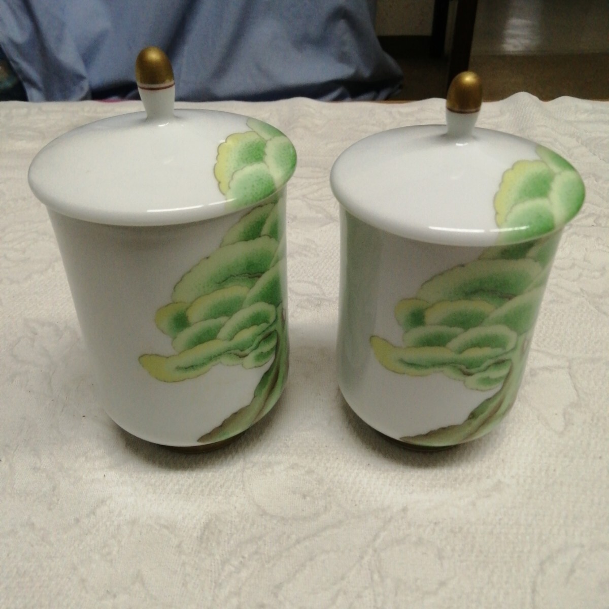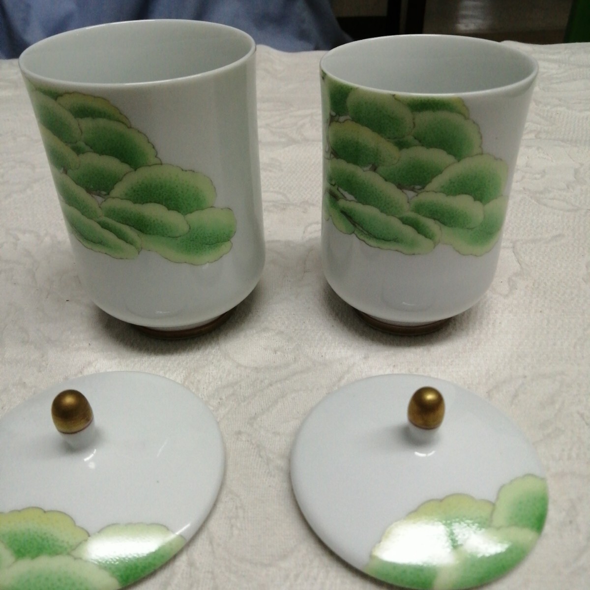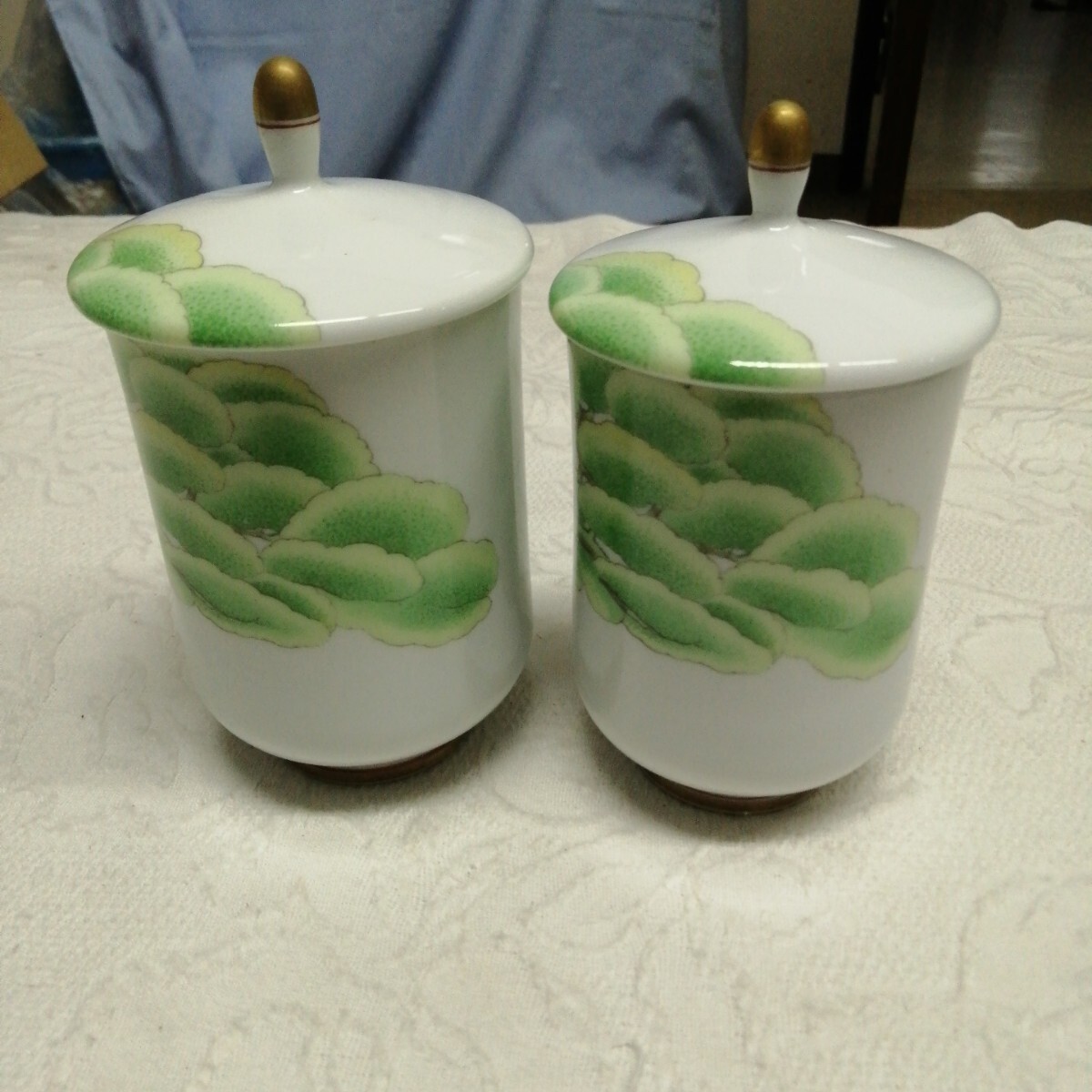 有田焼 香蘭社 大木 松の木 夫婦 湯呑 茶器 蓋付 金