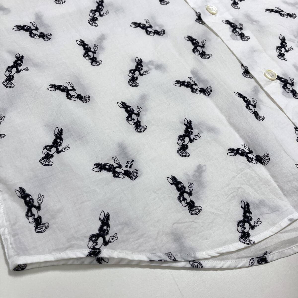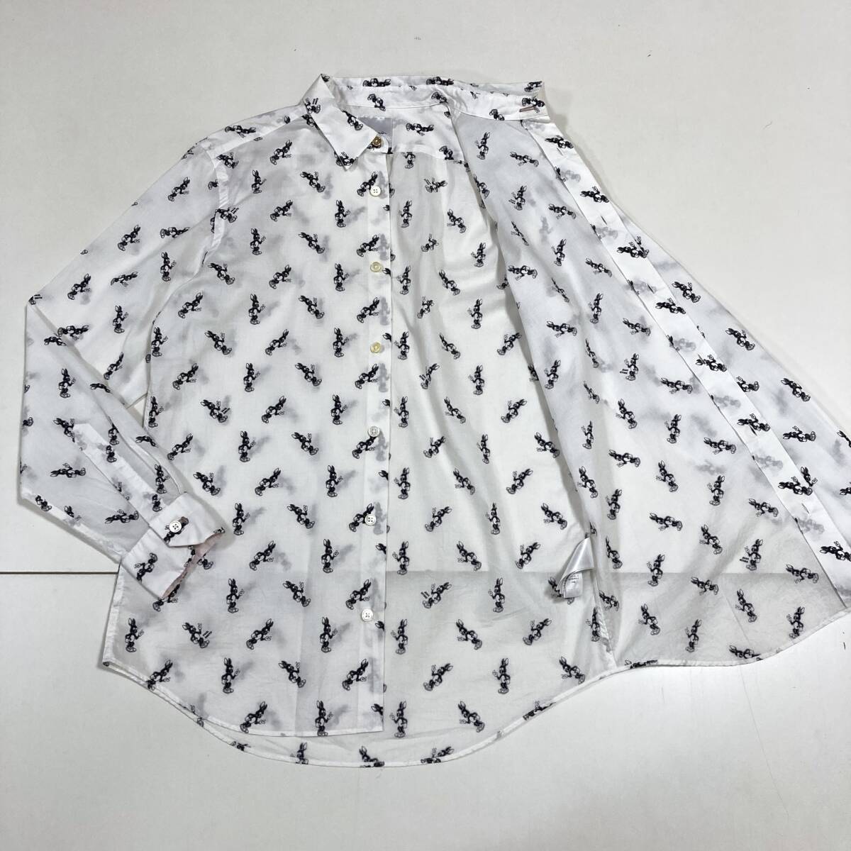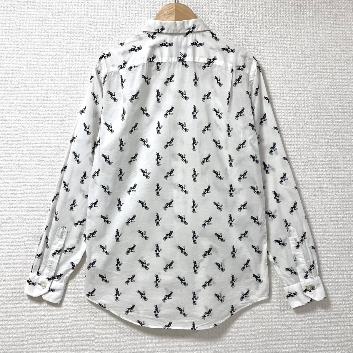 最高級 本ライン Paul Smith ウサギ 総柄 長袖 シャツ ホワイト 白 メンズ Sサイズ 日本製 ポールスミス バニー ラビット 5080080