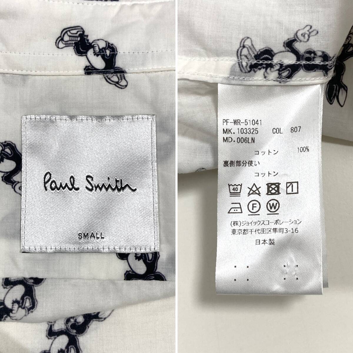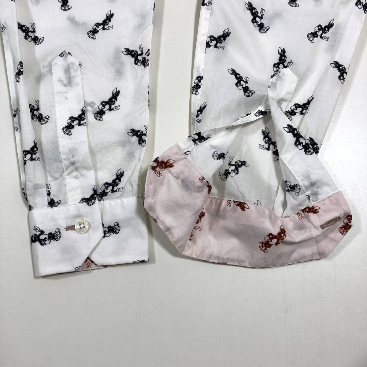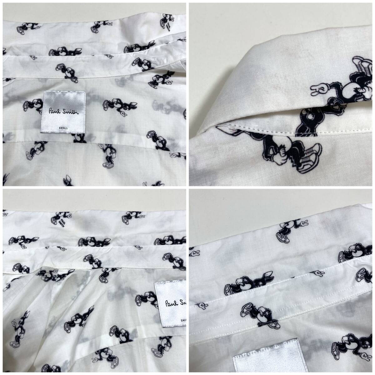 最高級 本ライン Paul Smith ウサギ 総柄 長袖 シャツ ホワイト 白 メンズ Sサイズ 日本製 ポールスミス バニー ラビット 5080080