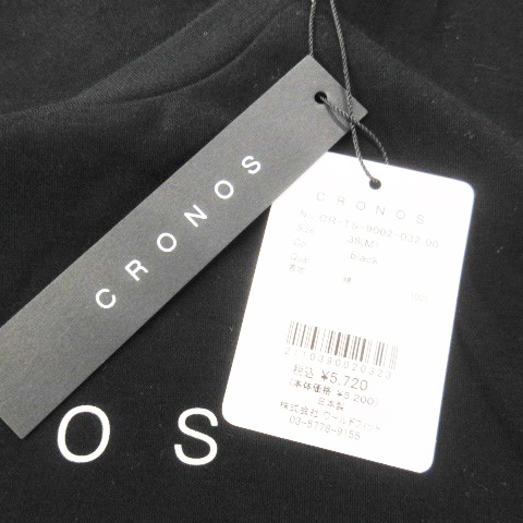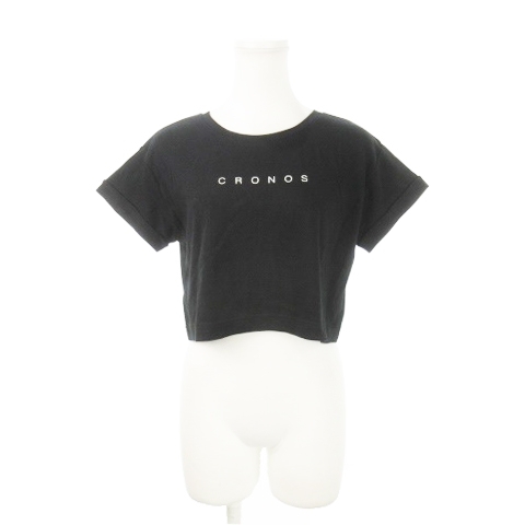 未使用品 クロノス CRONOS Tシャツ クルーネック 半袖 クロップド ロゴ ワンポイント コットン トレーニング スポーツ 38 M 黒