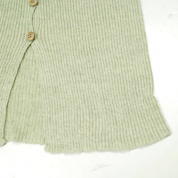 新品 BASERANGE ベースレンジ 24AW フランス製 DANDE SKIRT リブニット ボタンダウンスカート XS Light Green 定価49,940円 ボトムス