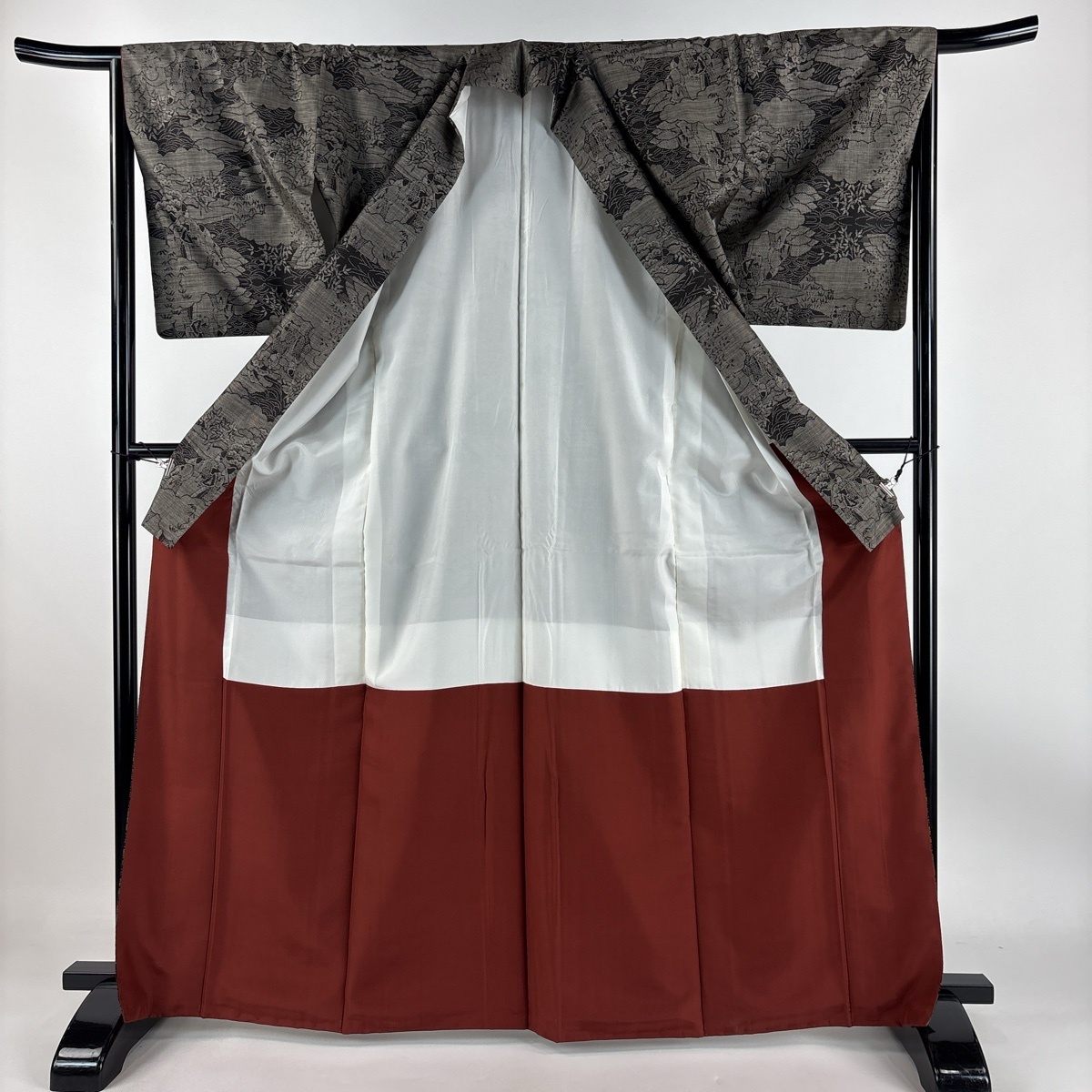 | 紬 美品 秀品 雲文 人物 焦茶色 袷 身丈166.5 裄丈66 M 正絹 【中古】 |