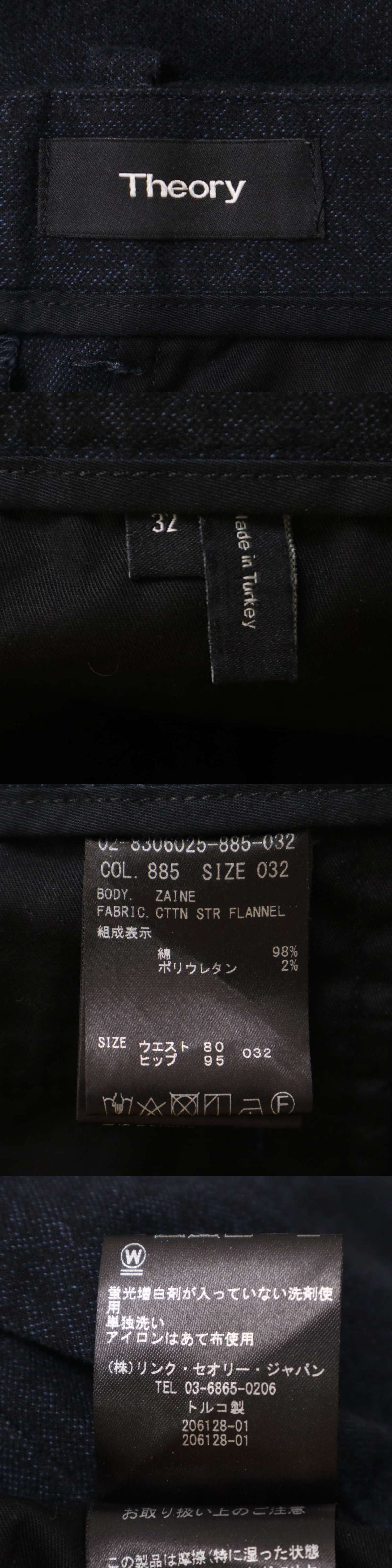 Theory セオリー 秋冬 【CTTN STR FLANNEL ZAINE】 ストレッチ★ フランネル テーパード パンツ Sz.32 メンズ 紺 ネイビー