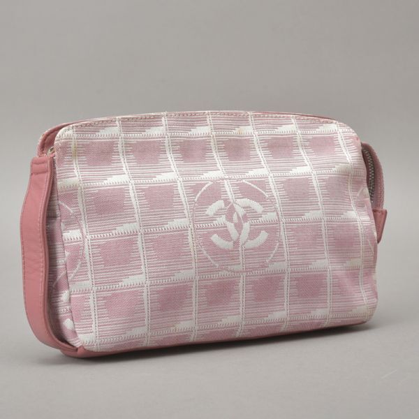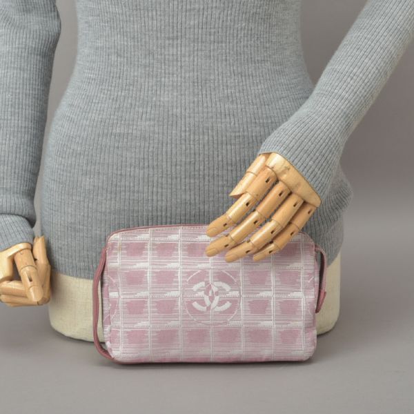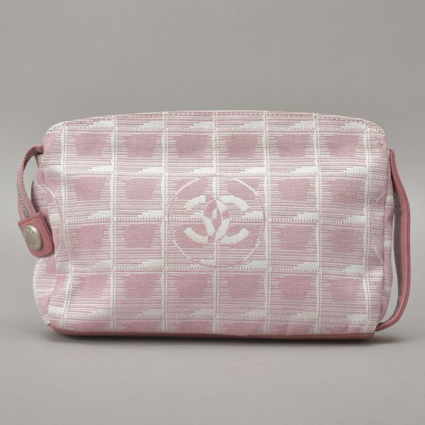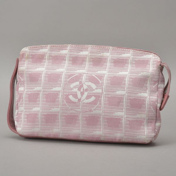 CHANEL シャネル ニュートラベルライン アクセサリーポーチ バニティバッグ ジャガード ピンク 6番台 ココマーク 鞄 /070717-31/■a.k/k.h