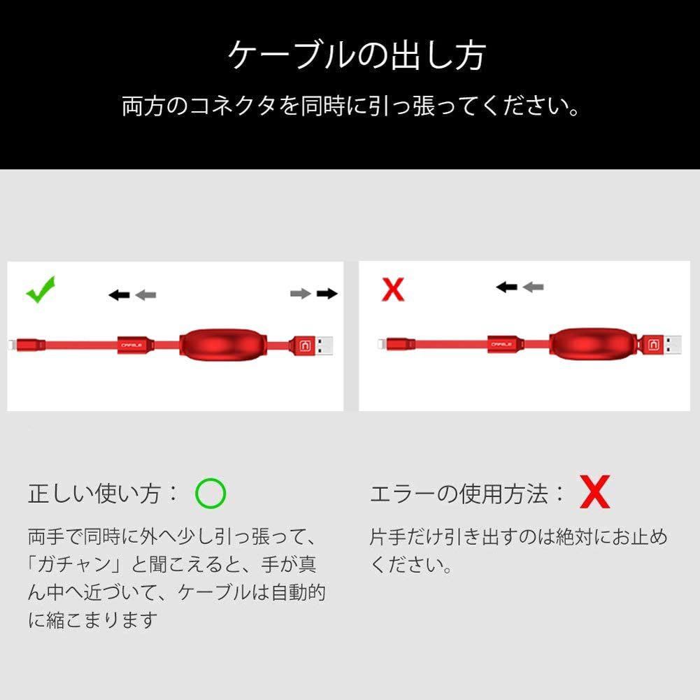 ☆【お使い方】両端を同時に引っ張って、お好きな長さまで止めると固定できます。巻き取るときも、両端を同時に引っ張ってから手を緩めるとケーブルは自動的に収まります。