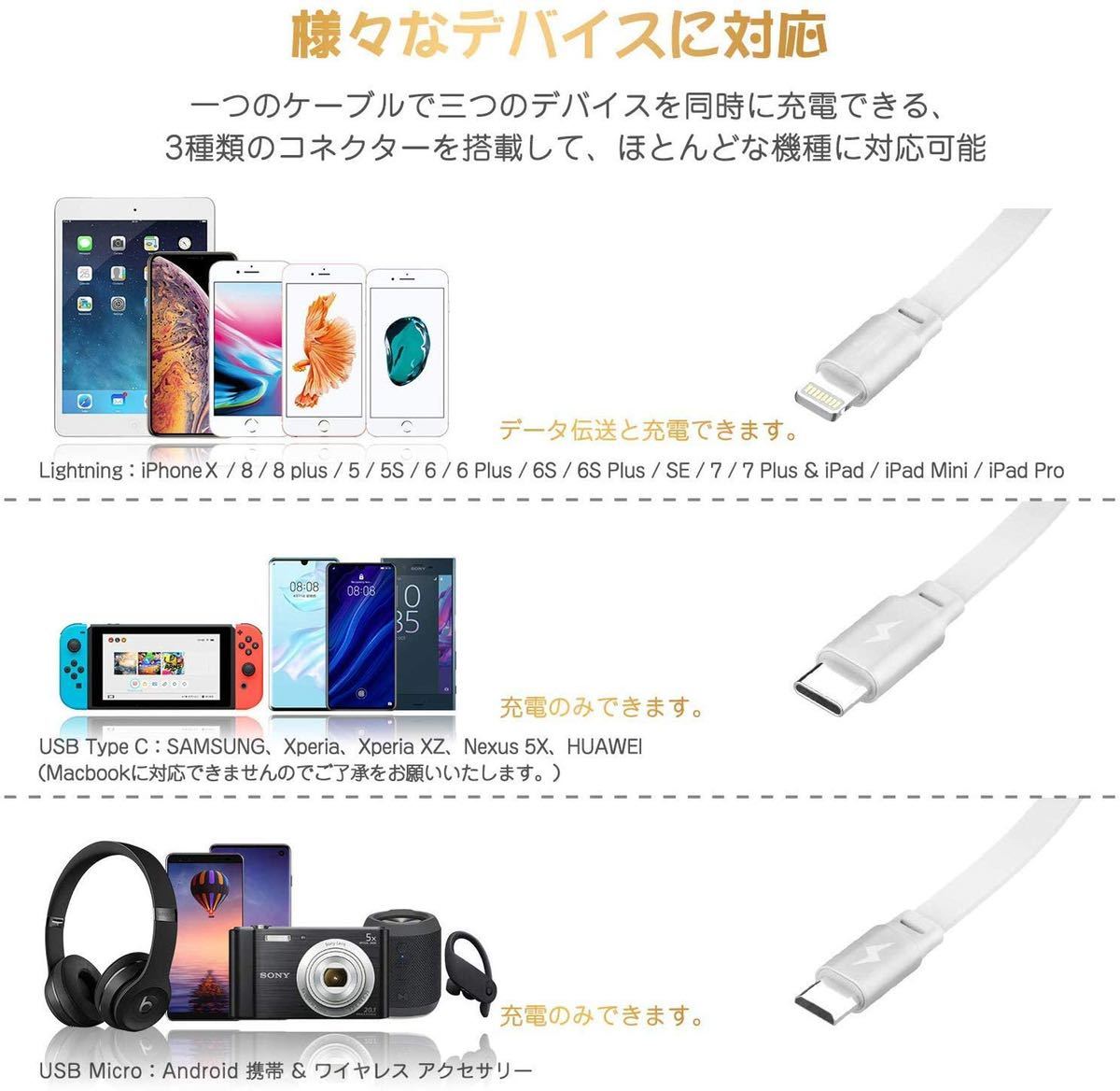 ☆ 【3台同時に充電】 iPhoneケーブル、Micro-USBケーブル、Type-Cケーブルでほぼ全てのiPhone、Android設備に同時充電できます。