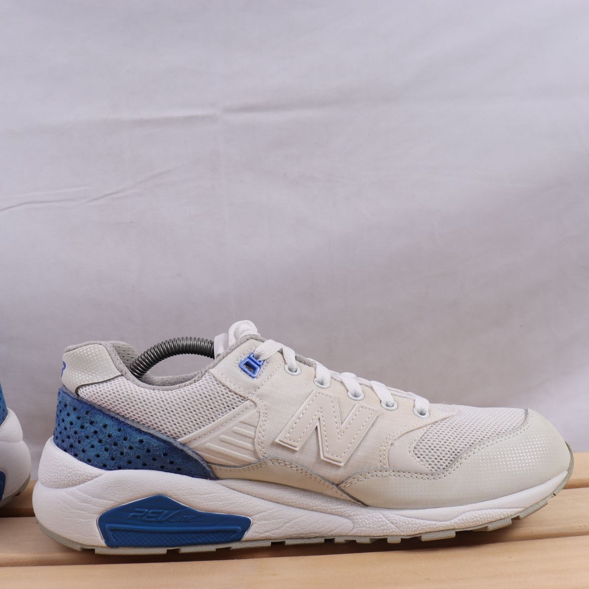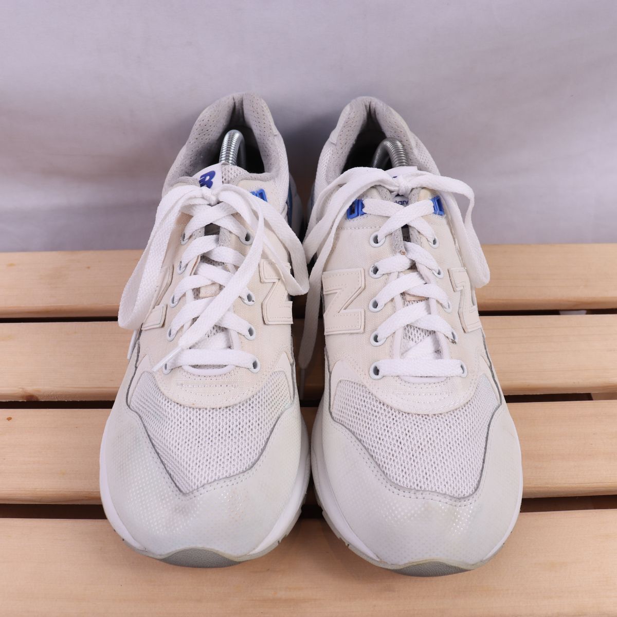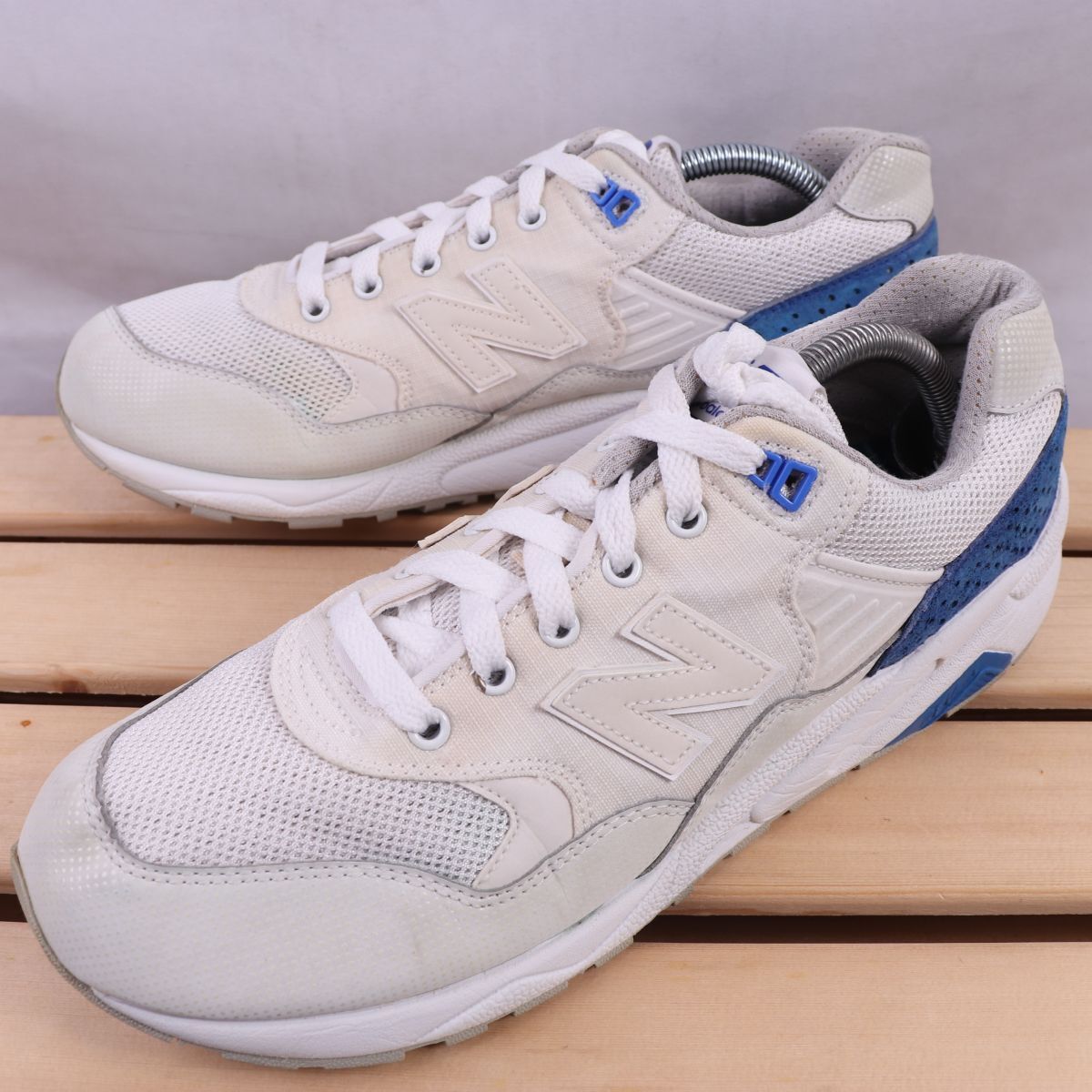 z1267【580】ニューバランス US10 28.0cm/白 ホワイト 青 ブルー ライトグレー newbalance メンズ スニーカー 中古