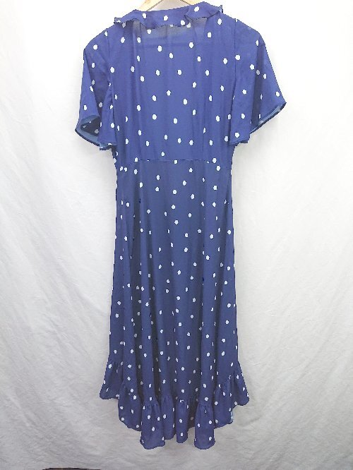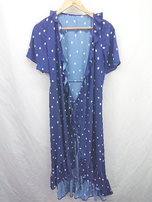 ◇ ⊂ PEACH JOHN ピーチジョンジョン 水玉 ドット柄 半袖 ロング ワンピース サイズS-M ブルー系 レディース E