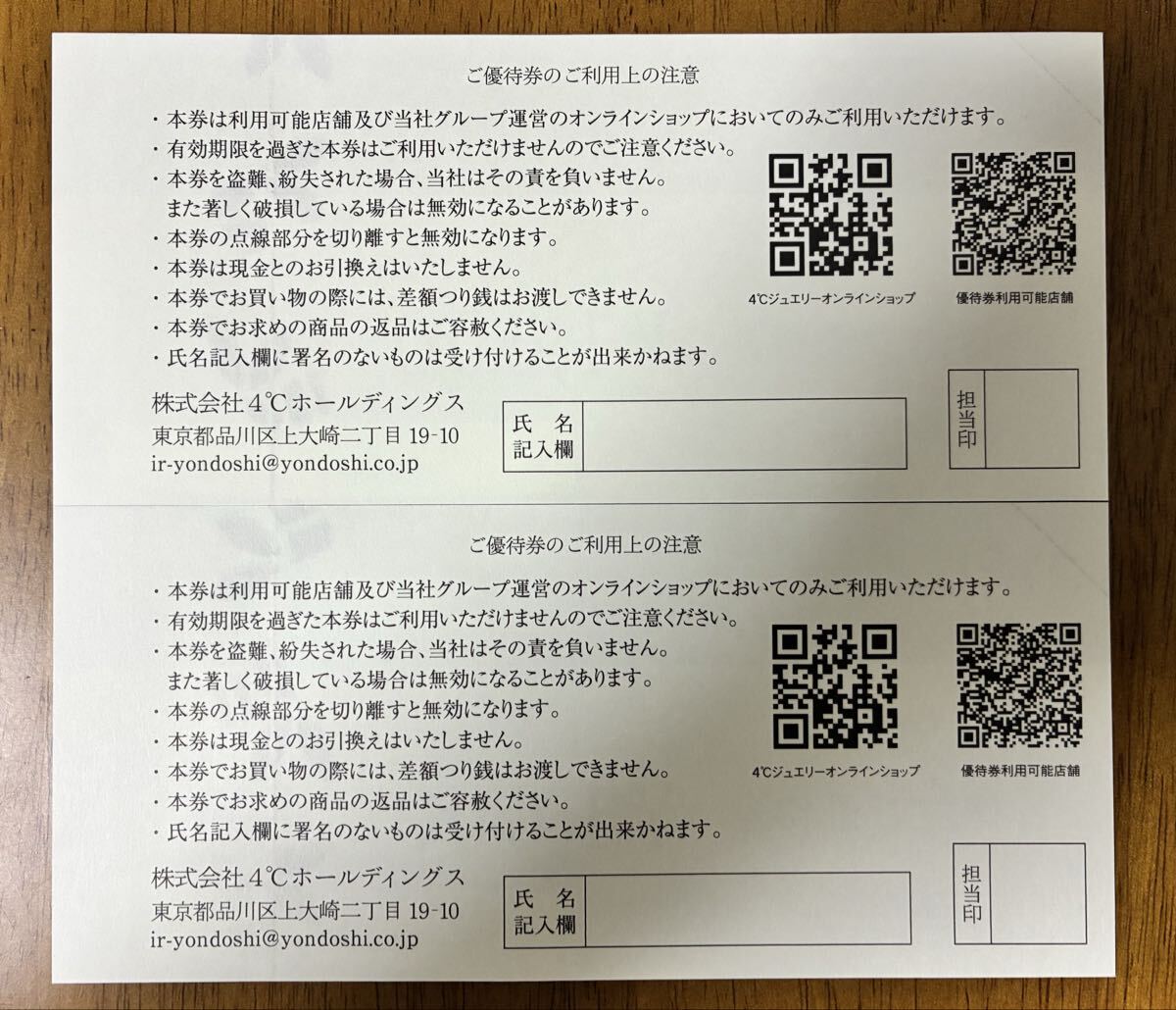 4℃の株主優待券です。