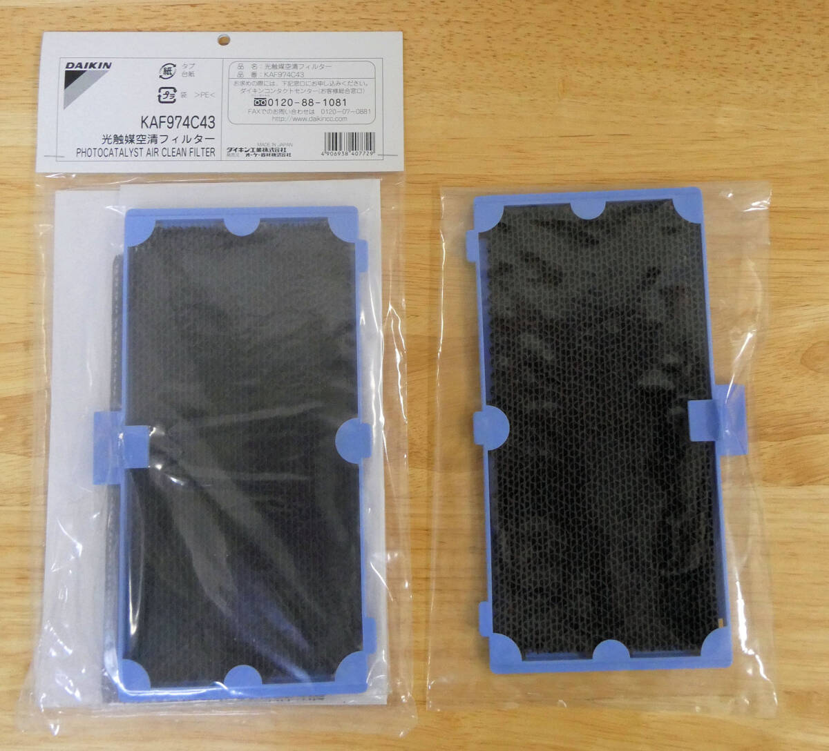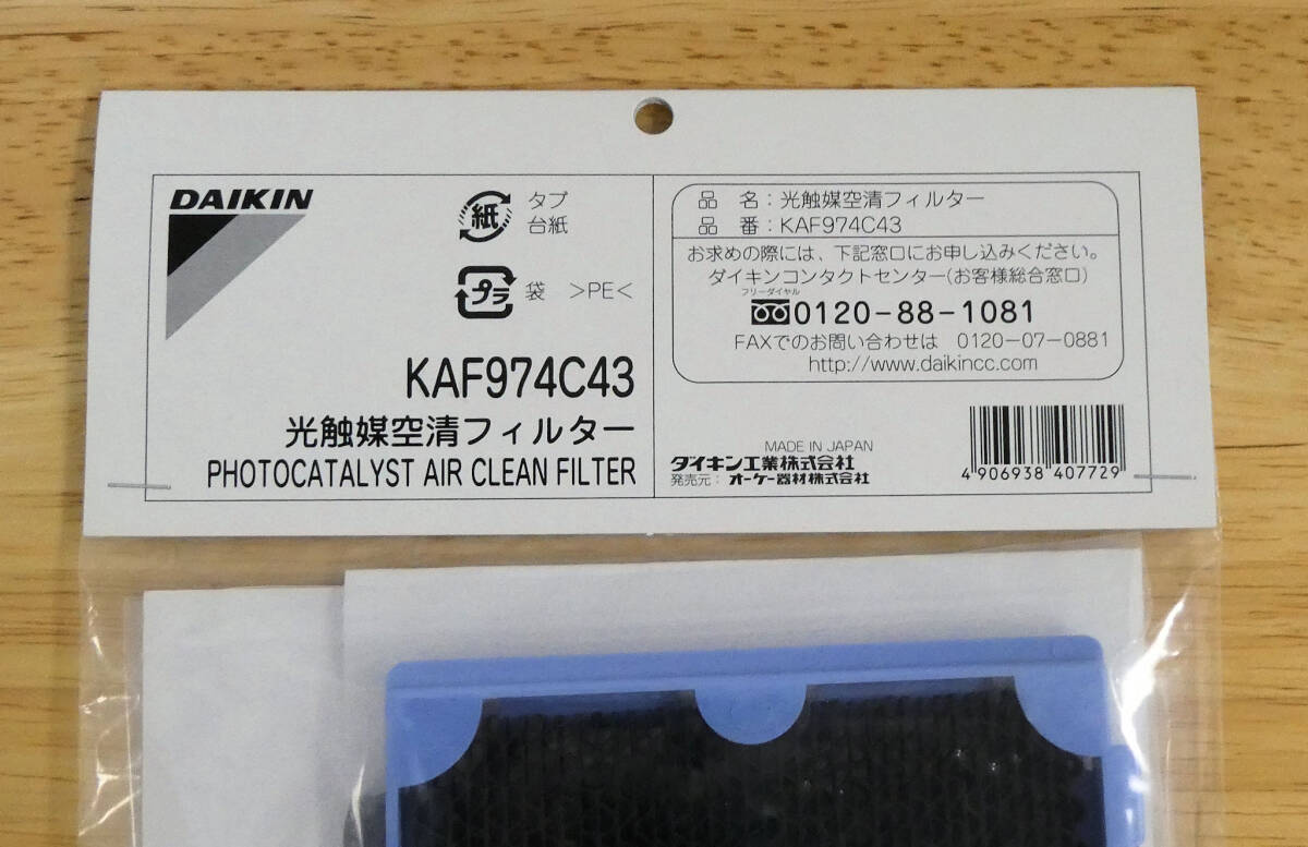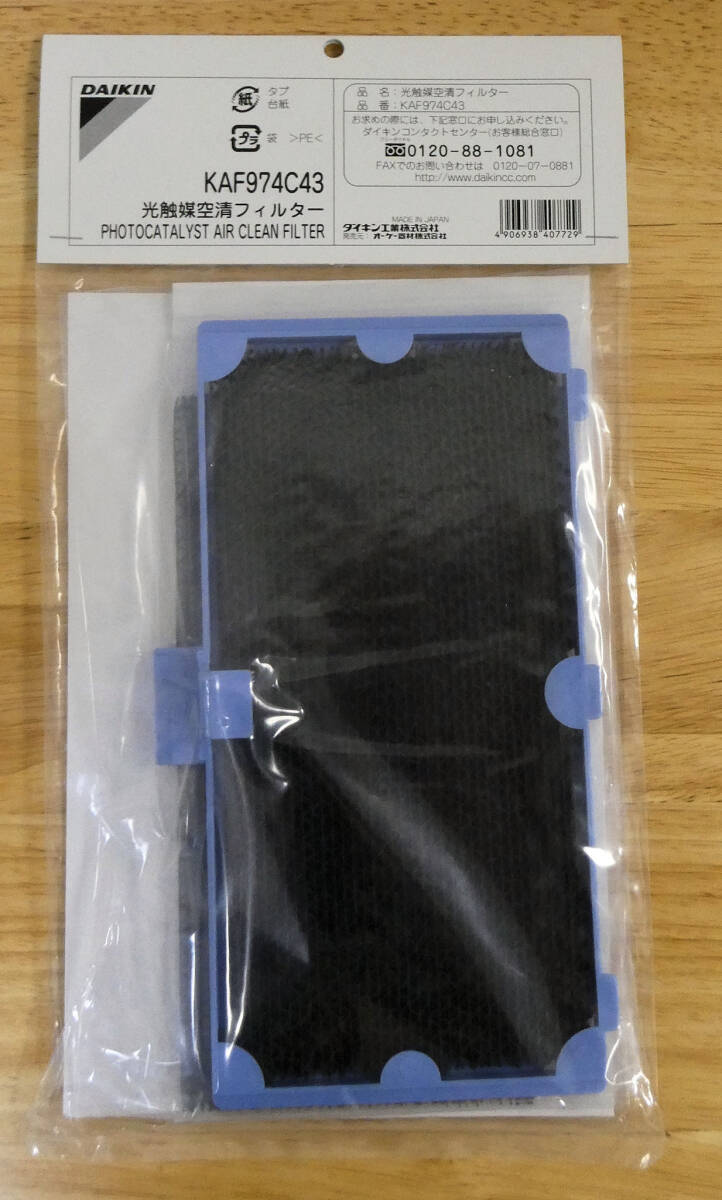 ダイキンのエアコンに取り付ける光触媒空清フィルター(KAF974C43) です。